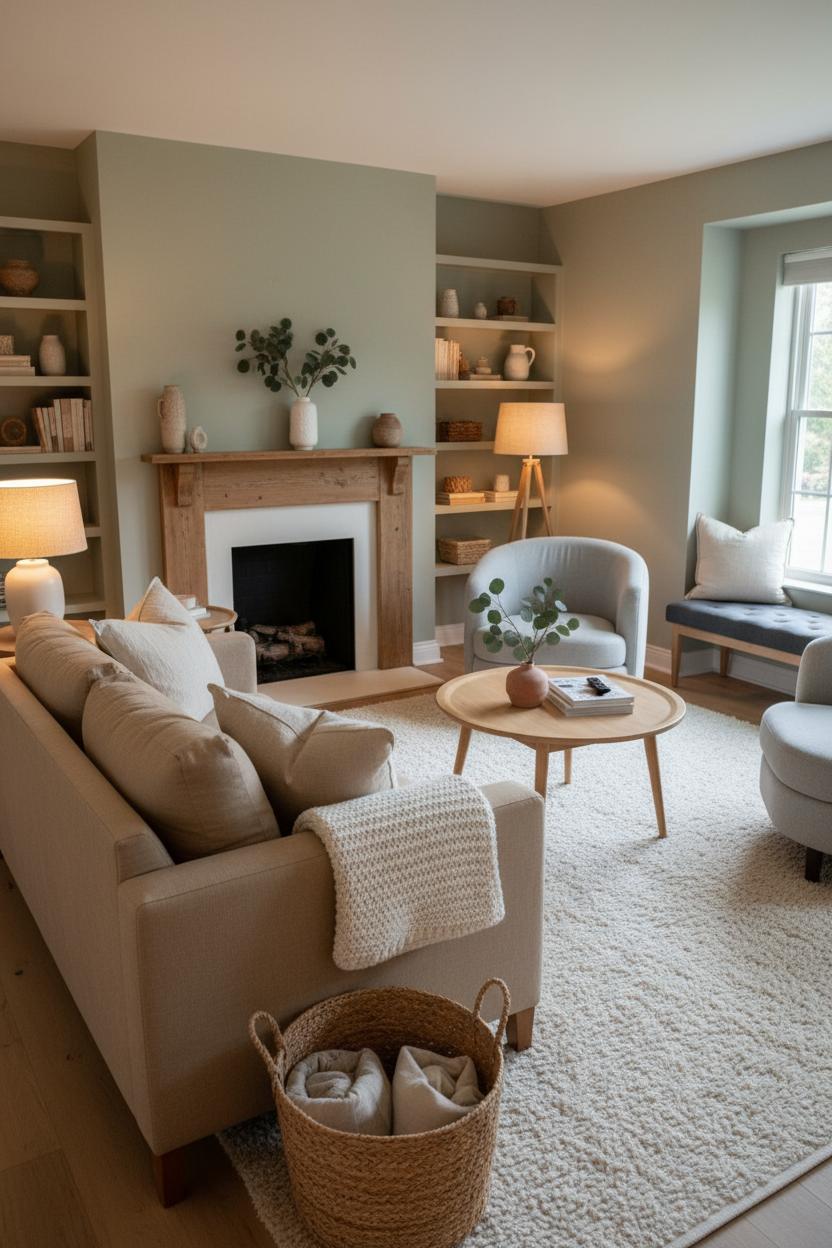Lighting seals the mood in a true hygge home, so scatter pools of glow with a dimmable floor lamp beside the coziest chair and a table lamp by the sofa. Keep the palette calm with neutral home decor—soft woods, linen cushions, and earthy ceramics—and add life with a few faux eucalyptus stems on the mantel or coffee table. Small living room ideas that maximize comfort include nesting side tables, swivel chairs that pivot for conversation, and leggy pieces that show more floor, visually expanding the space. Corral magazines, remotes, and extra blankets in a rattan storage basket so surfaces stay clear and serene. The goal is a layout that encourages lingering: easy reach for a mug, a place to tuck your feet, and clear paths that gently loop around the seating. Rearrange until the room feels like it’s giving you a soft exhale—because the best living room decor doesn’t just look cozy, it lives that way.