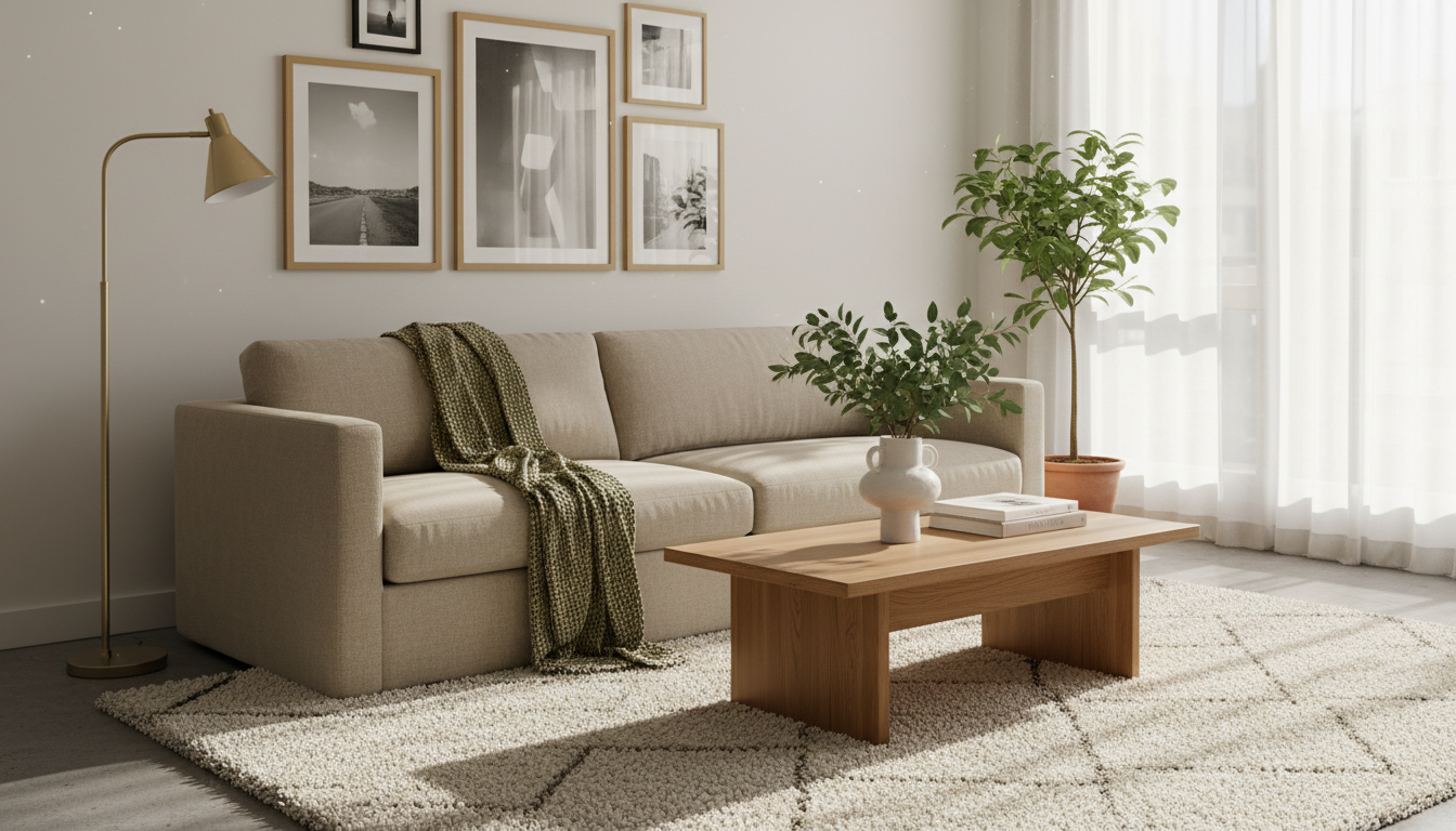 Start with color, because the right palette sets the mood for a cozy living room that still feels fresh and modern. Think creamy whites, mushroom taupes, and soft camel layered with a whisper of sage or smoky blue to keep a modern living room from reading flat. Ground the space with a plush neutral area rug that’s a shade or two lighter than your sofa so everything feels airy, then echo those tones in gauzy curtains and oversized knit throws. If you’re planning a living room makeover, bring in a couple of accent pillows in varied hues from the same family—linen in oat, velvet in eucalyptus, maybe a subtle windowpane pattern—to create that collected, Pinterest-worthy vibe without visual chaos. The secret is repetition: repeat colors at least three times around the room so the eye can travel and the space feels intentionally pulled together.