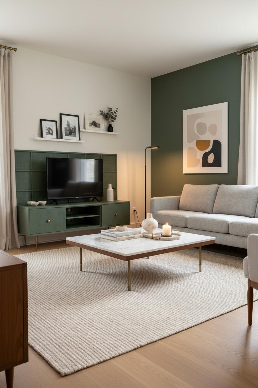 When you want big impact without a full renovation, start with paint—it’s the fastest way to shift the mood of a modern living room from “fine” to “wow.” Try a warm white with a whisper of cream to bounce light around and make a cozy living room feel soft and inviting, or go tone-on-tone with a greige wall and slightly deeper trim for subtle depth. If you’re craving drama, color-drench a single wall in a saturated clay or moss; it frames your furniture like art and instantly elevates the space. Renters can fake the look with peel-and-stick panels or removable wallpaper in quiet textures. These small living room ideas keep everything airy while still creating a fresh backdrop for a quick living room makeover.