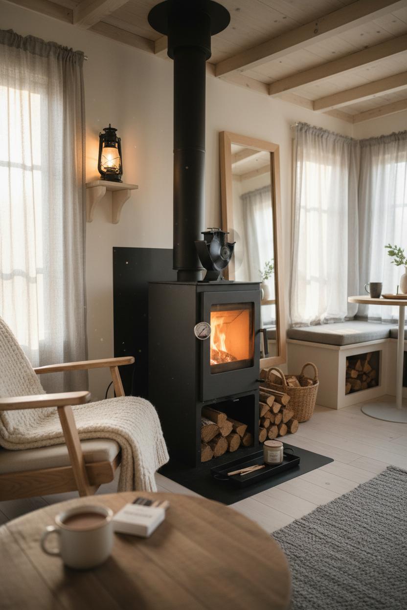 Design-wise, think of airflow as part of your floor plan. Create a gentle “heat highway” by avoiding bulky pieces directly in front of the stove. Low-profile seating, an open-legged chair, and a reclaimed wood coffee table placed just off the warm stream give your mug of cocoa a cozy landing spot while keeping pathways clear. Texture is your secret weapon for cozy cabin ideas: drape a wool throw blanket across the sofa, stack woven baskets with extra kindling, and let natural grain show off on beams and stools. In tight spaces, even small shifts matter—swap heavy drapes for linen to let sunlight boost daytime warmth, and tuck a mirror opposite the stove to reflect that amber glow. With a simple wood stove fan and a few thoughtful styling moves, you can transform cold corners into favorite perches, layering form and function so your home feels snug, intentional, and endlessly welcoming—proof that the smartest comfort in tiny home living comes from all the little details working together.