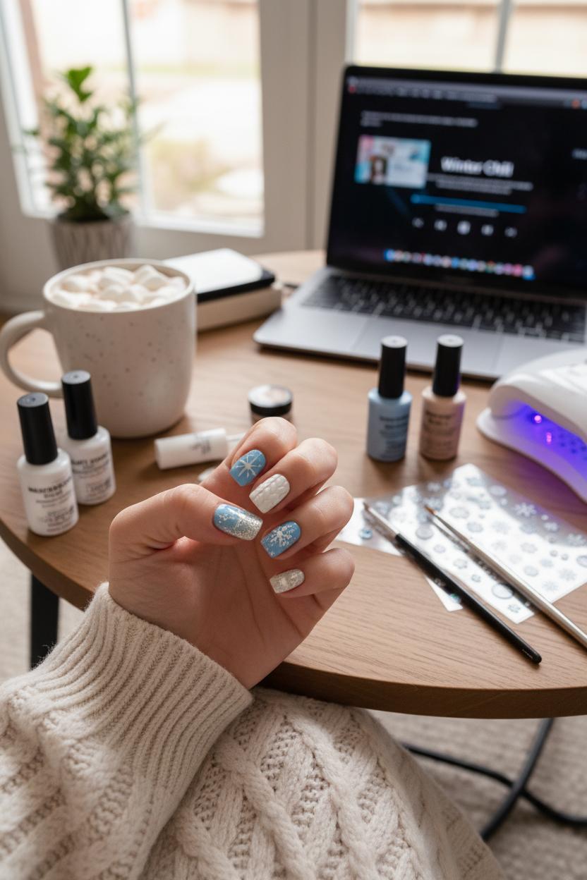 When you’re ready to play, try layering techniques that build texture and depth. For sweater nails, use a liner brush to sketch simple cable patterns—think tiny V’s, braided lines, and dotted stitches—cure between each detail to keep them raised and plush, then finish with the no-wipe gel top coat or add a matte top layer for that soft-knit vibe. For snowflake nails, map a tiny star at the center, pull out six even arms with your liner brush, then add dainty branches and scattered dots like falling snow; a whisper of silver shimmer at the tips feels like frost catching the light. Mix and match for effortless holiday nail ideas: one sweater accent, one glittery gradient, two minimalist French tips with petite flakes, and a negative-space nude to keep the set airy. With the right tools—a reliable gel nail polish set, precise nail art brushes, quick-and-cute snowflake nail stickers, a trusty UV LED nail lamp, and a protective no-wipe gel top coat—you’ll have everything you need to create cozy, camera-ready designs that carry you from ice-skating dates to fireside nights.