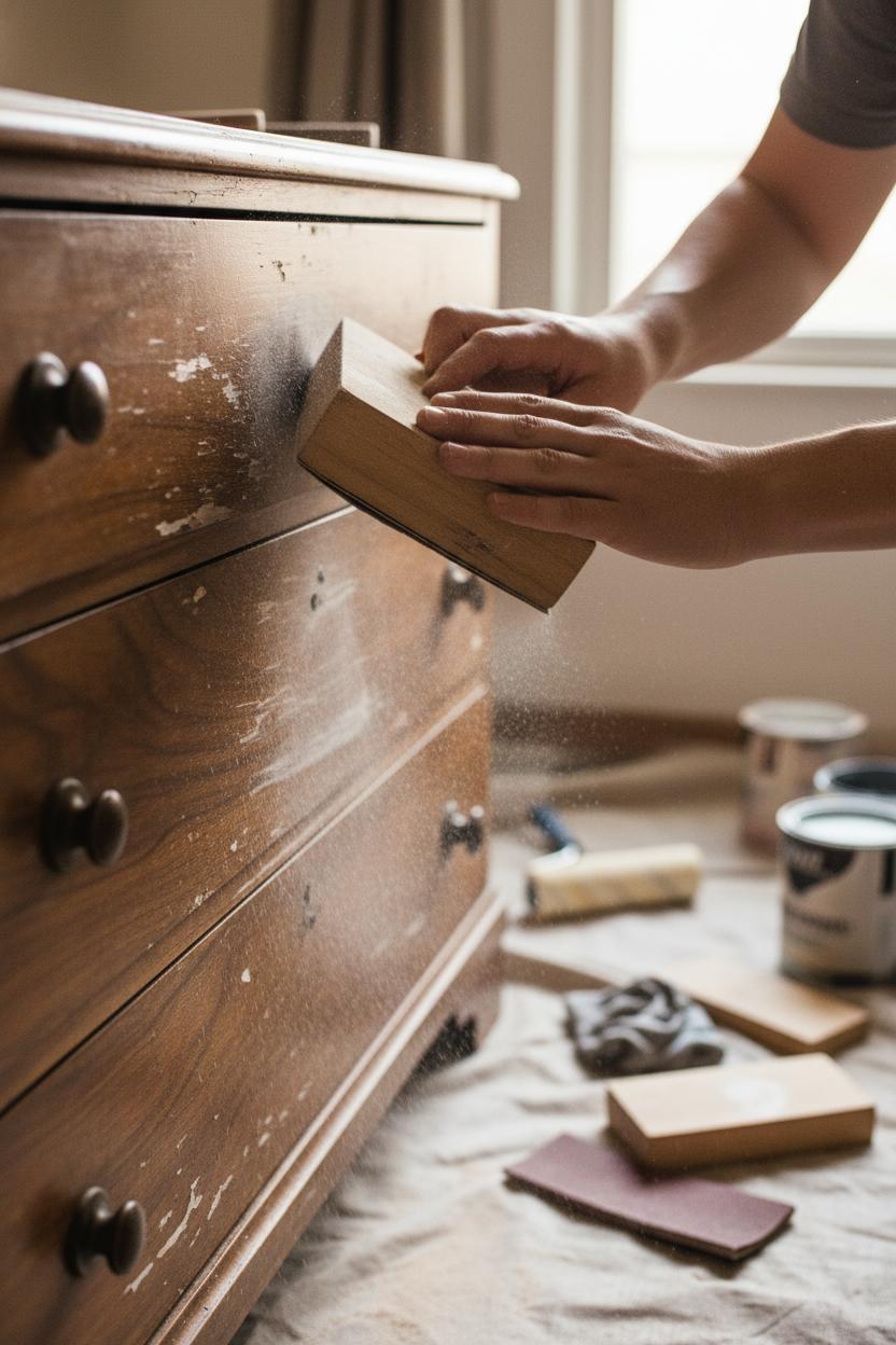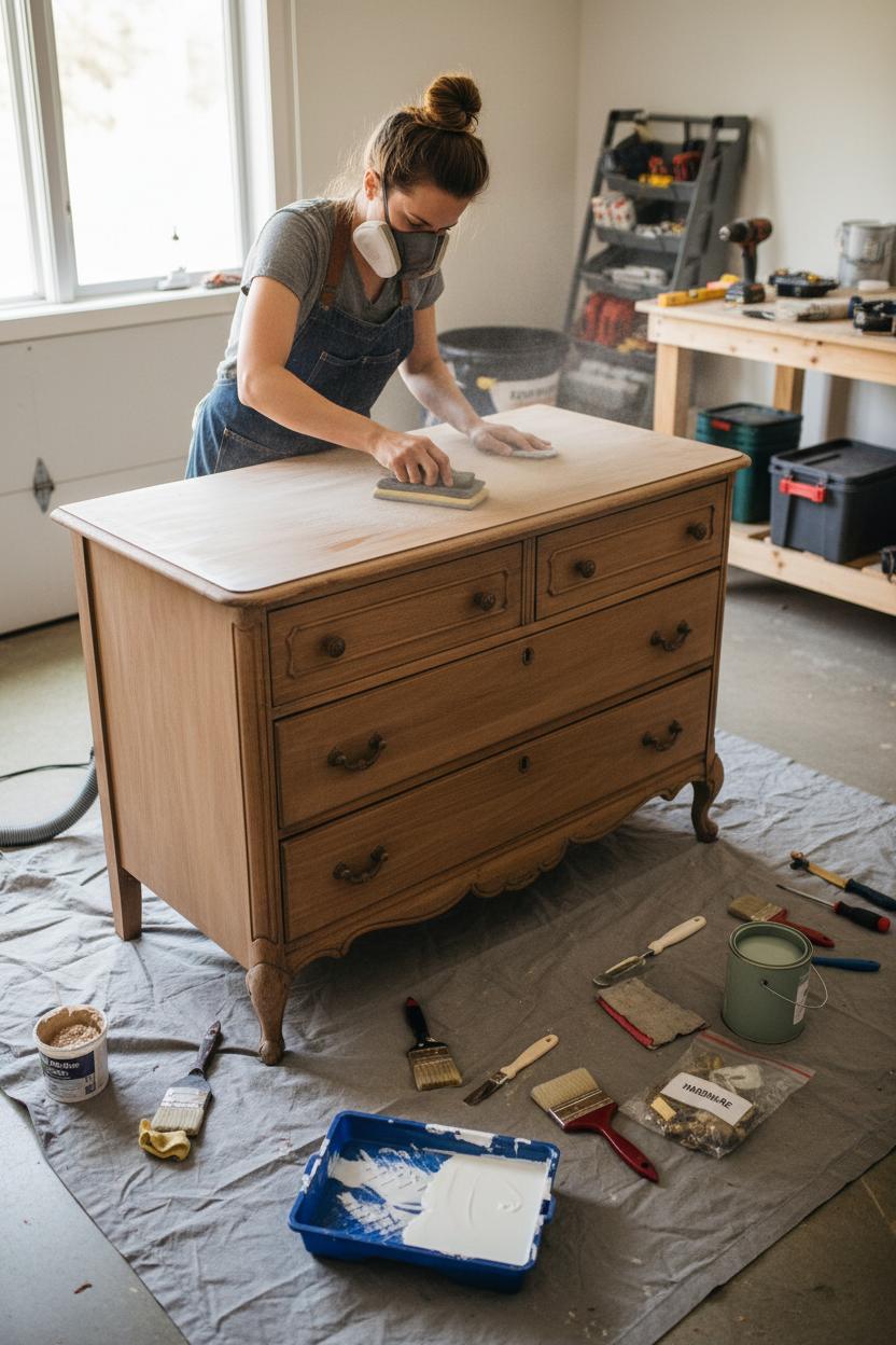 Before you dive into the magic of a dresser makeover, gather a few tried-and-true essentials so your thrift flip feels smooth from start to finish. Start with cleaning supplies: a gentle degreaser, a rag, and a small brush to get into corners. A screwdriver set is key for removing old hardware—tuck screws into a labeled bag so nothing wanders off. Lay down a drop cloth and slip on a dust mask, then reach for a sanding block in medium and fine grits to scuff the surface. This quick pass is the secret to any great furniture makeover, helping paint grip and knocking back old sheen. If you’re dealing with a slick laminate or glossy varnish, a bonding primer is your best friend—it creates a grippy base that keeps your hard work from chipping later. Fill dings with wood filler, smooth with your sanding block once dry, and swipe everything clean with a tack cloth.