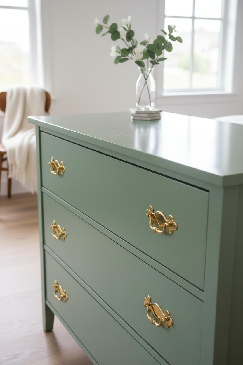 The best part? Reinstall those gleaming brass drawer pulls and step back. If your DIY furniture adventure started with slick laminate, a bonding primer underneath your paint deserves a little nod here—it helped everything stick so your sealant can shine. That final, whisper-thin layer of protection ties the whole thrift flip together, turning a simple dresser makeover into a polished piece that’s ready for everyday life.