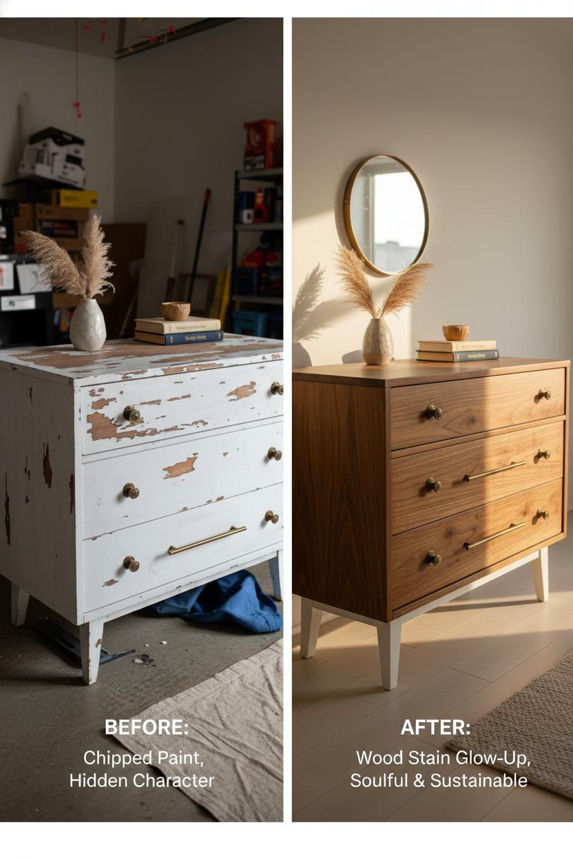 If you’ve ever walked past a scuffed dresser or wobbly nightstand at the thrift store and thought “Nope,” here’s your nudge to look again. The magic of a good thrift flip lives in that moment you picture the after. Take a scratched, orangey oak dresser: the before is dull and dated, but a quick pass with an orbital sander to smooth the top, a rich wood stain to warm the grain, and a coat of chalk paint on the base can turn it into a boutique-worthy focal point. Swap out the tired knobs for fresh furniture hardware pulls—think brushed brass, matte black, or ceramic—to add instant polish. It’s a simple furniture makeover that reads custom, all while keeping your budget (and the planet) happy with sustainable decor.