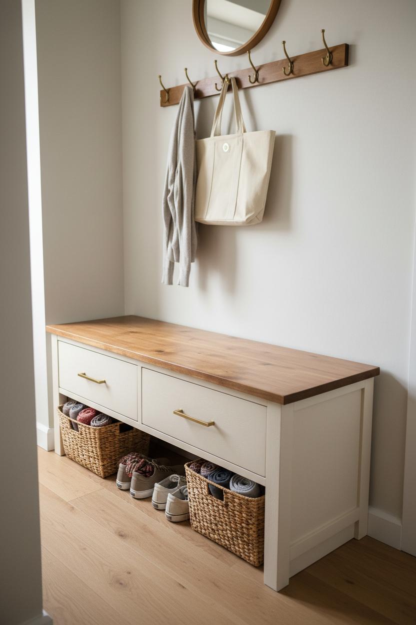 Small spaces love hardworking pieces, and that’s where a good thrift flip really shines. For an instant entry upgrade, look for a low dresser or a sturdy coffee table at the thrift store and imagine it as an entryway bench with hidden storage. Give the top a smooth start with an orbital sander, then stain it with a warm wood stain for that rustic-meets-modern look. Paint the base in a creamy chalk paint to keep things light in a narrow hallway, and finish with fresh furniture hardware pulls on any drawers or cubbies for a polished detail. Slide a few baskets underneath for shoes and scarves, add a row of hooks above, and you’ve got a tidy landing zone that doubles as upcycled furniture and beautiful, sustainable decor.