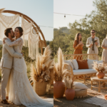 For boho bridal ideas that tie everything together, consider a signature cocktail bar styled like a curated shelf: stacks of art books, hand-poured candles, and small cloches over found shells or crystals. Hang a mini macramé panel for escort cards, and scatter matchbooks with your monogram for a keepsake. Keep the palette sun-baked and romantic—clay, honey, terracotta, and linen—with just a hint of black for contrast. Whether your boho wedding is beachside or in a rustic loft, these layered touches make the lounge a magnetic little world where guests linger, laugh, and soak in the dreamy details.