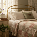 Once your bed is chosen, dress it like a country bouquet. Layer a floral quilt queen over crisp sheets, then tumble on linen shams, crochet throws, and one perfectly rumpled ruffle for that effortless shabby chic decor vibe. Mix tiny ditsy florals with ticking stripes and gingham for a pattern story that feels gathered, not staged. Keep the palette soft—cream, blush, sage, and a whisper of sky blue—to heighten the romantic bedroom aesthetic without overwhelming the room. A wooden bed frame loves texture, so don’t be shy about nubby knits and washed cottons. The result is irresistibly cozy bedroom decor that invites afternoon naps and early morning coffee in bed.