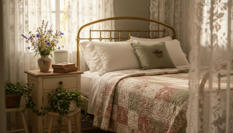Ready to turn your room into a storybook retreat? These dreamy cottagecore bedroom ideas blend cozy bedroom decor with vintage farmhouse style and a romantic bedroom aesthetic. Think a floral quilt queen draped over a sturdy wooden bed frame, lace curtains catching the breeze, and fairy string lights twinkling above. Layer in shabby chic decor, timeworn textures, and botanical wall art for a soft, lived-in glow. From thrifted treasures to DIY accents, this guide shows simple swaps to cultivate calm, charm, and countryside magic—no matter your budget or square footage.