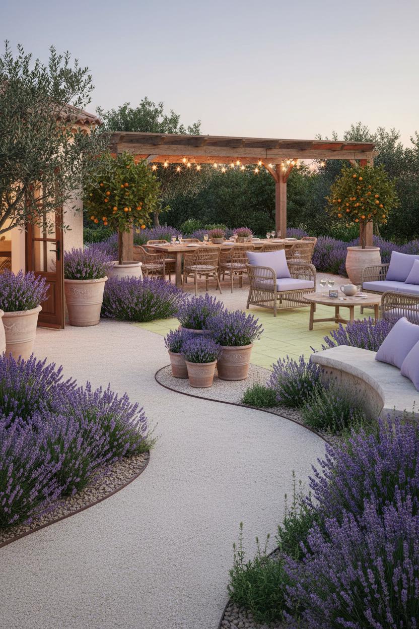 Dreamy Lavender-Lined Patio Oasis Ideas