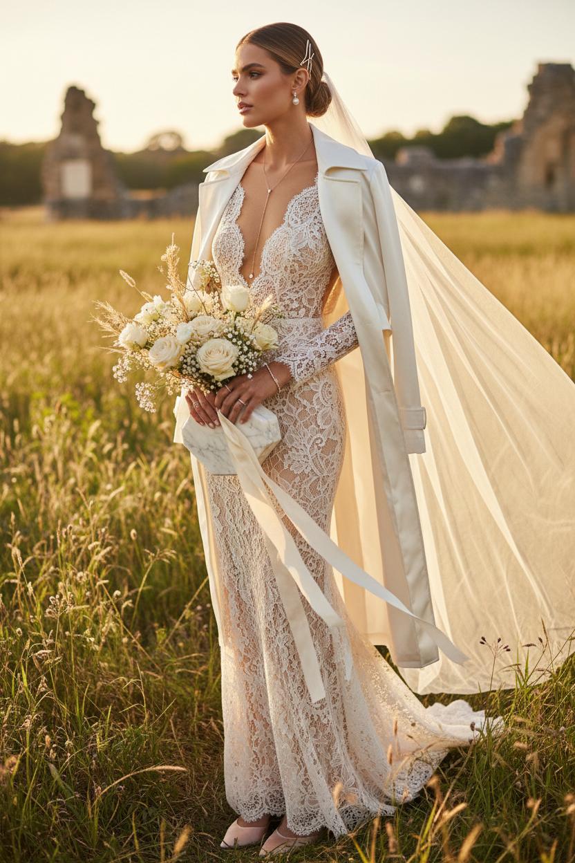 If you love drama, lean into contouring silhouettes and strategic structure. A mermaid lace gown with a detachable overskirt gives you two looks in one—ceremony romance and reception-ready ease—while a structured blazer or silk trench tossed over your shoulders adds city-chic polish. Consider warm ivory, soft blush, or champagne tones to enhance the vintage character without looking dated. Finish with pointed-toe pumps or sleek mules, and swap a traditional necklace for a whisper-thin lariat to elongate the neckline. Whether you’re channeling heirloom elegance or breezy-modern charm, styling a vintage lace dress is all about contrast: ornate fabric, clean accessories, and a confident, contemporary silhouette that transforms a classic lace wedding dress into a forever-worthy statement.
