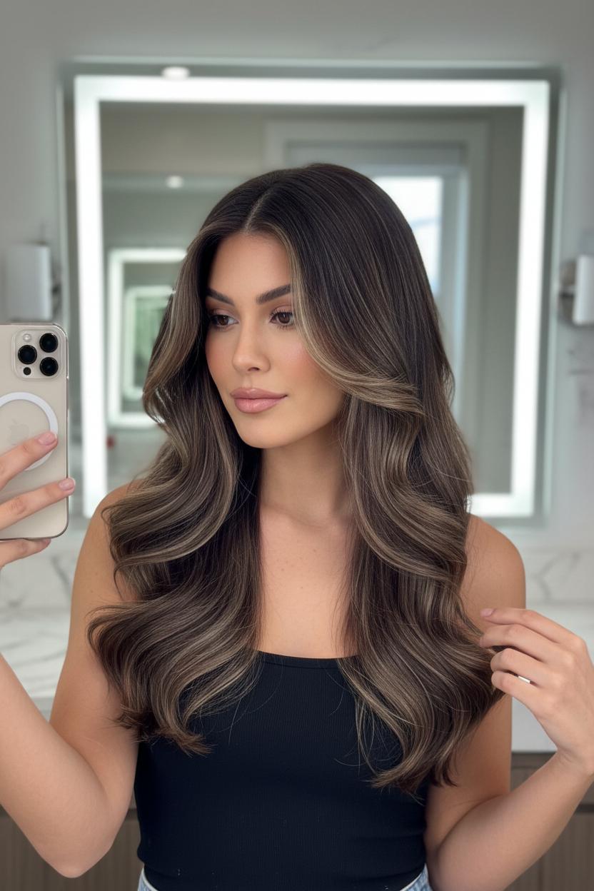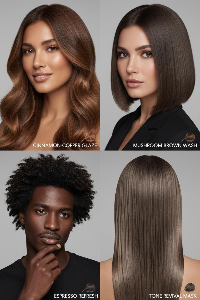 Care is what makes it read luxe day-to-day. Treat those lightened strands to a weekly bond repair treatment to keep the texture silky and strong, and never heat style without a heat protectant to preserve that glossy finish. Air-dry with a smoothing cream for natural movement, or bend in soft waves so the highs and lows catch the light. Plan on a tonal gloss every 6–8 weeks to refresh and refine the shade—cool it down for winter, warm it up for summer. Whether you go cool mushroom brown, warm up with copper touches, or stay neutral and glossy, these dimensional brunette upgrades are the kind of easy, elevated hair color ideas you’ll pin now and love in every mirror selfie later.