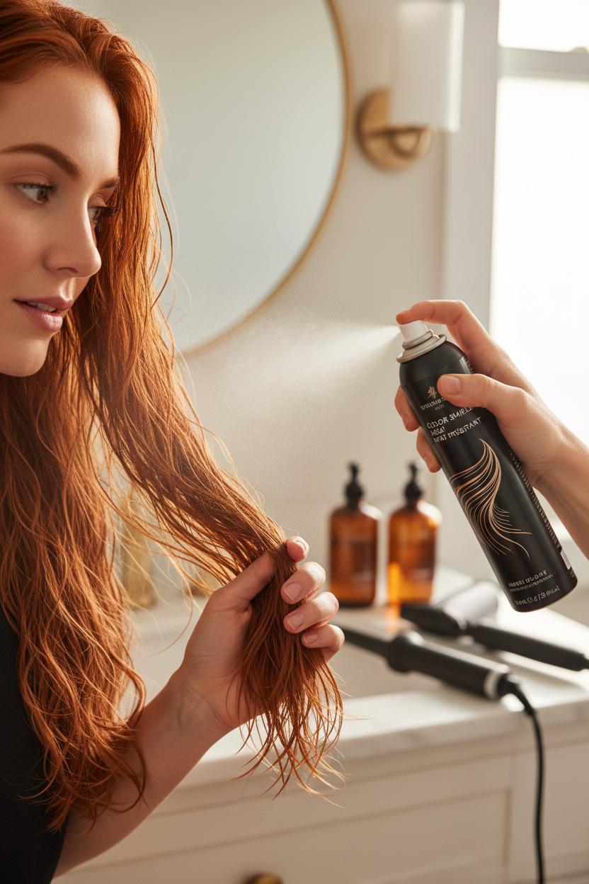 Customize the rest of your routine around your shade, but never skip the spray. If you’re rocking balayage highlights or brighter pieces, pair your heat protectant with a weekly purple shampoo to keep brass at bay. For that chic, cool-neutral mushroom brown, choose a formula that adds frizz control and UV protection to prevent warmth from creeping in. Copper hair loves a color depositing mask between washes to revive that ember glow; seal the deal with a protectant before you wave or blow out to keep vibrancy from burning off. Deep, glossy brunette hair looks especially mirror-like when you layer a bond repair treatment once a week, then mist on protectant before any sleek pass of the iron. And if you’re stretching salon visits, a semi permanent hair dye or gloss can refresh tone—just remember the first rule afterward: heat protectant every single time. For best results, apply to damp hair before drying, then reapply lightly on dry hair before hot tools, combing through to coat mid-lengths and ends. One thorough pass with heat on properly protected hair beats repeated touch-ups on unprotected strands, and your shade will stay shiny, saturated, and totally photo-ready.