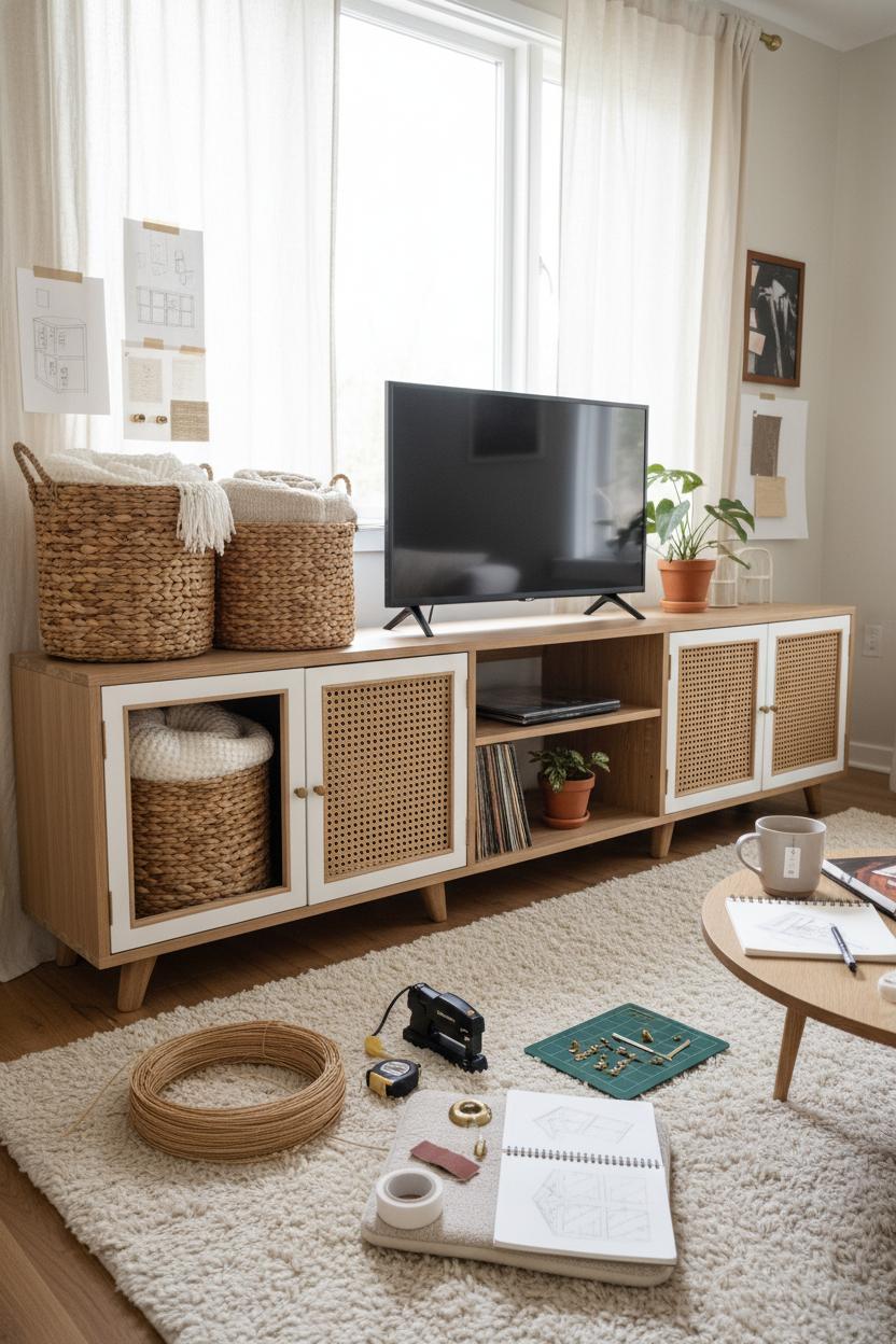 Before you pick up a staple gun, map out your Kallax hack like a mood board come to life. Start by deciding on your layout: will your unit live tall and narrow or long and low under a window? Sketch the grid and mark which cubes will be caned doors, which will stay open, and where you’ll tuck rattan baskets for hidden bits. Keep balance in mind—a row of cane fronts on the bottom with open shelves on top feels airy yet grounded, while alternating doors and open cubbies reads more collected. If you plan to use it as a media console, leave space for cords and a little airflow; cane webbing DIY is naturally breathable, which is a bonus.