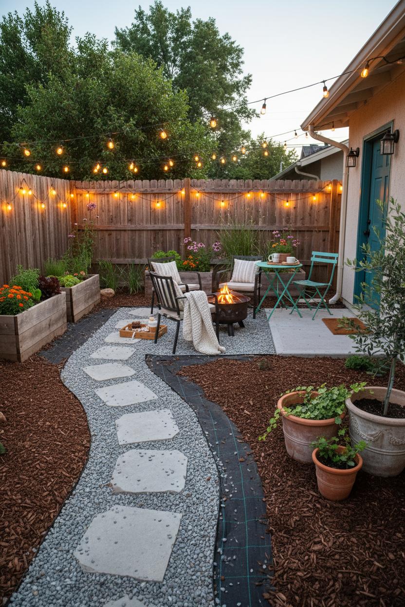 Think in zones before you think in decor. In a small yard design, carve out mini “rooms” that match how you actually live: a cozy lounge for morning coffee, a tiny dining corner for weeknight tacos, and a slim planting strip for color and herbs. Use visual cues to define each area without crowding—an outdoor rug under chairs, a pair of planters to suggest a threshold, or gravel landscaping to outline a path that loops softly through it all. Flow matters in small spaces, so aim for an easy L-shaped or circular route that keeps feet moving and sightlines open. These yard ideas make your space feel intentional and larger than it is, turning simple backyard landscaping into a complete experience.