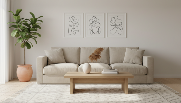 Craving a calm, modern decor refresh? This Modern Cozy Living Room blends a neutral palette with natural textures for effortless warmth. Discover living room ideas that work in any small space: think a linen sofa layered with nubby throws, a jute area rug under an oak coffee table, and a sculptural black floor lamp for contrast. We’ll show how to style a boucle accent chair, mix woods and textiles, and edit your interior design so it feels airy, inviting, and timeless—without sacrificing comfort.