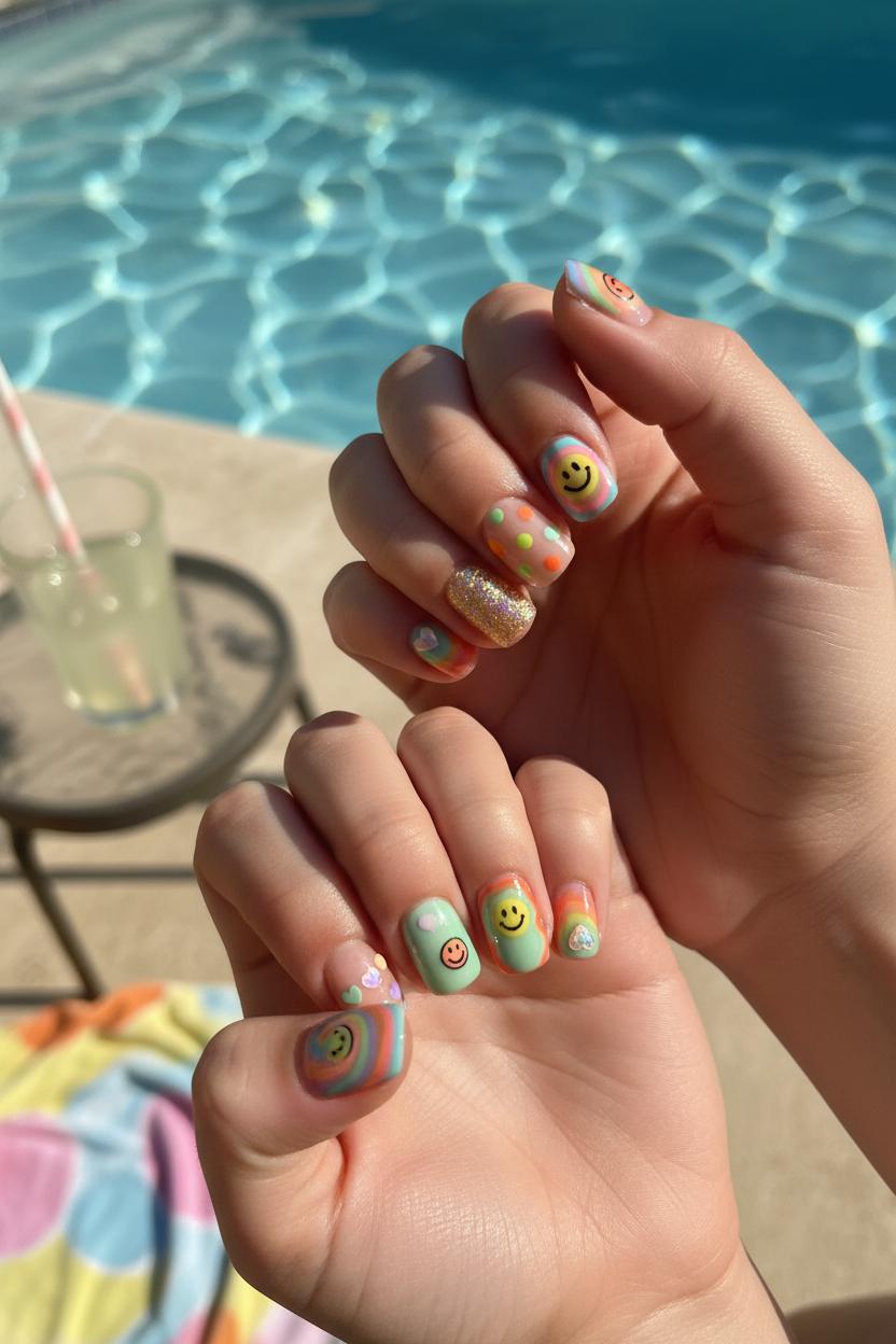 From dotted confetti to breezy swirls and cheerful smiley accents, your fingertips can carry the sunshine all season. Mix colors, layer accents, and keep it glossy—proof that fun nails don’t need a salon. Whether you try stickers, press-ons, or quick brushstrokes, this summer nail art guide keeps a playful manicure doable and budget-friendly. Save your favorite cute nail designs, tweak the palette to match your vibe, and let every gesture feel like vacation. Ready to get started? Pick one of these easy nail ideas, pour something cold, and paint your happy.