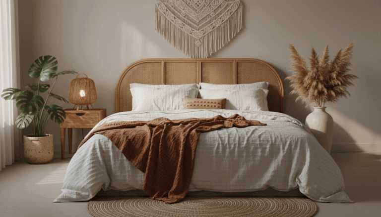 Dreaming of a relaxed retreat? These cozy boho bedroom ideas blend laid-back boho decor with a soothing neutral bedroom palette. Layer textures with a rattan headboard, linen duvet cover, and jute area rug, then add movement with pampas grass decor…