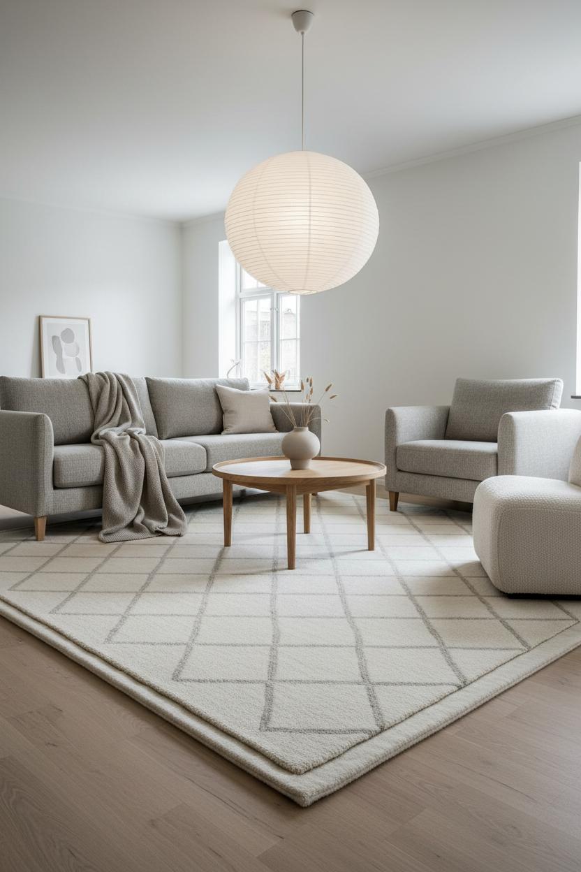 In a Scandi living room, the wool area rug is the quiet anchor that pulls everything together—softening acoustics, warming bare floors, and adding that hush of texture a neutral interior craves. Wool is naturally springy and resilient, with just enough loft to feel indulgent without looking fussy, which makes it perfect for Nordic decor where simplicity and comfort coexist. Look for tones that whisper rather than shout: chalky ivory, warm oat, mushroom, stone, or a heathered mix that hides everyday life. Subtle geometry—a slim stripe, a tonal grid, or a classic diamond—brings gentle movement while keeping a minimalist living room calm. Clean edges or a petite fringe will both work; if your space leans streamlined, a simple serged edge is beautifully understated.