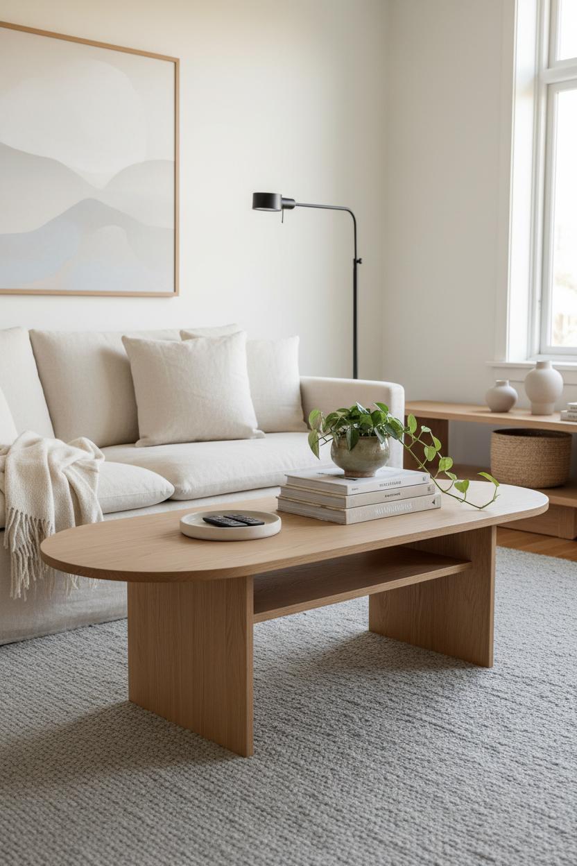 Quality matters in a minimal living room where every piece is seen. Look for solid or well-veneered oak with a matte finish that resists fingerprints, and choose joinery and legs that feel sturdy but light. Open shelving offers a spot for a woven basket; closed storage keeps visual noise at bay. In the end, the right light oak coffee table doesn’t compete—it completes. It pulls together texture, tone, and function, quietly radiating warmth so your neutral home feels thoughtful, welcoming, and effortlessly Scandinavian.