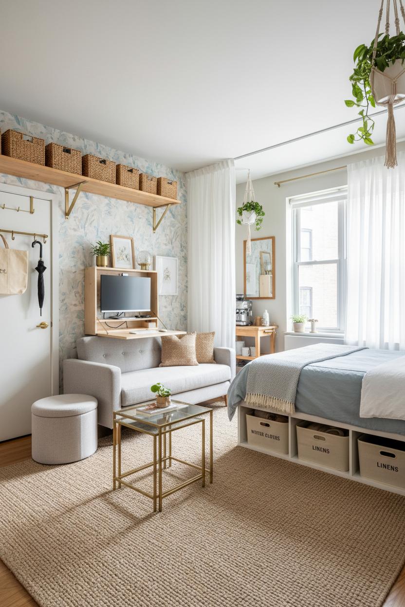 Living small doesn’t mean sacrificing style. This guide to small apartment decor is packed with space saving ideas and tiny home design inspiration you can implement today. Think multi-taskers: a folding wall desk, a chic sofa bed, and over the door shelves that corral clutter. Hide more in under bed storage bins and refresh walls with renter friendly decor like peel and stick wallpaper. From storage smarts to layout magic, these studio apartment tips help you create a polished, airy home that feels twice its size.