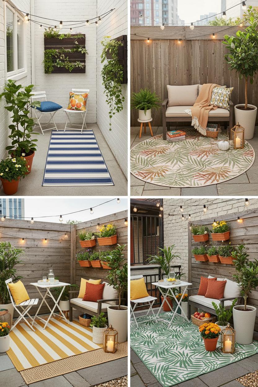 When you’re working with a petite patio, the secret is to treat it like a tiny living room and lean into a cohesive palette. Start with a hardworking foundation—an outdoor rug waterproof enough to shrug off sprinklers and iced-coffee spills—and let it define the zone so even the smallest corner feels intentional. Then layer in small patio decor that repeats two or three tones and textures you love, like sun-washed terracotta, soft charcoal, and natural rattan; this repetition makes everything read polished instead of pieced together. One of my favorite patio styling tips is to add a simple “soft triangle” of color: cushions, a planter, and a throw that all nod to each other without matching perfectly. It’s a designer trick that looks high-end but stays super budget-friendly, a total win for small backyard ideas.