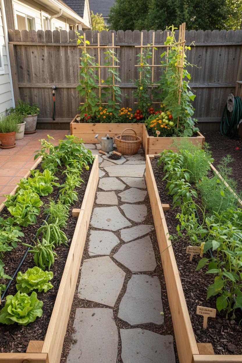 If you’re into small garden ideas that punch above their weight, think vertical and intentional. A drip irrigation kit coils neatly under mulch and waters right at the roots—perfect for busy days and tidy aesthetics—and a simple hand trowel will become your daily sidekick for tucking in seedlings and scratching in compost. Lean into companion planting to make every inch earn its keep: basil and marigolds snuggled beside tomatoes, carrots under airy dill, or lettuce in the dappled shade cast by staked peppers. For vegetable gardening for beginners, start with forgiving favorites—snap peas, salad greens, bush beans—and sprinkle in heirloom vegetable seeds for color and flavor that feel like a little garden story in each bite. Keep taller plants to the back, tuck quick harvests along the edges for easy snipping, and leave just enough path space—18 to 24 inches—to wheel a basket through. With thoughtfully placed raised garden beds and a few smart touches, even the tightest nook can feel abundant, organized, and beautifully alive.