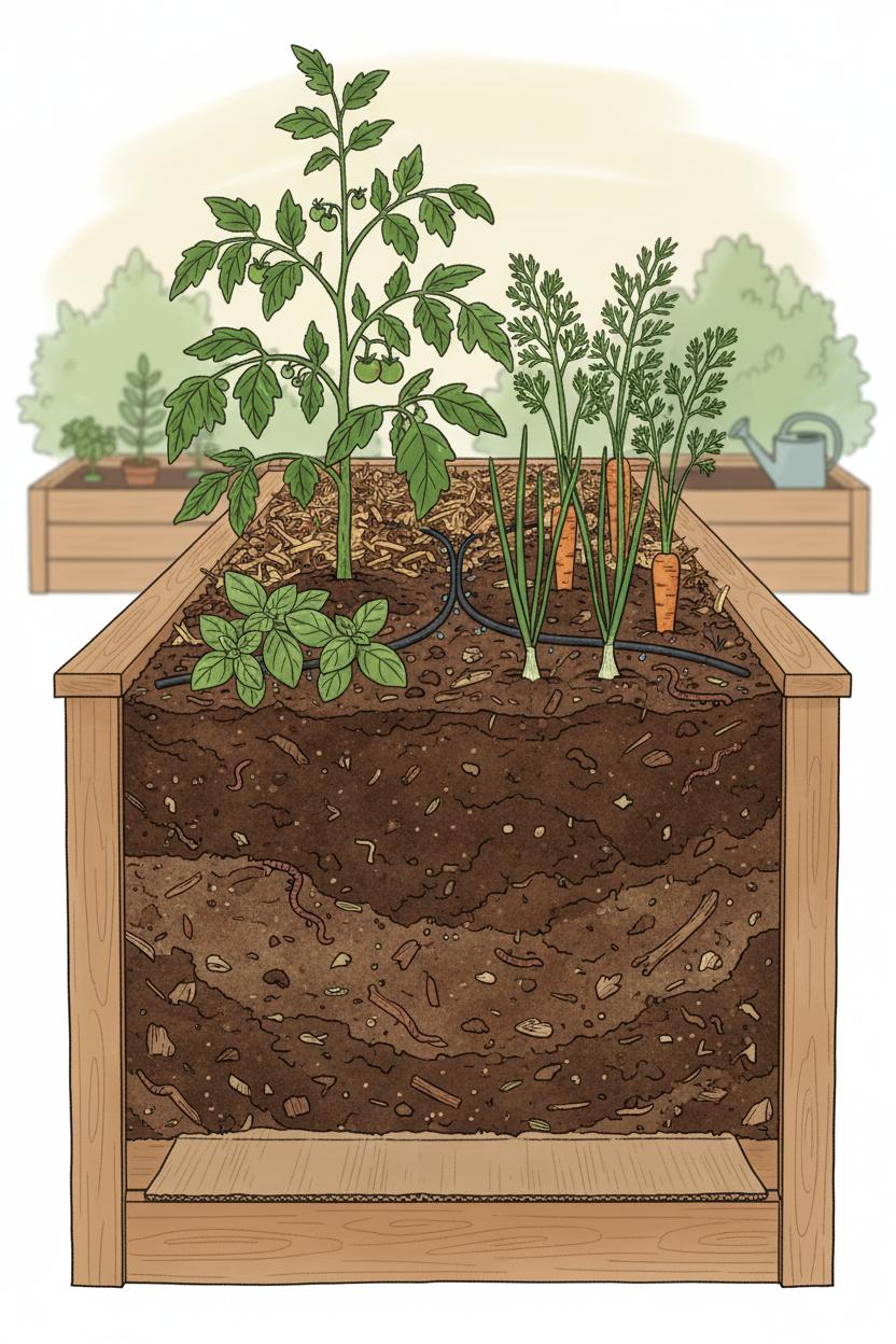If you want big harvests from a small footprint, think of your soil like a layered cake. In a small garden design, especially if you’re working with a 4×8 raised bed, the base layers are what give you structure and flavor for the whole season. After assembling your raised garden bed kit and lining the bottom with cardboard to smother weeds, start filling with a rich blend of organic garden soil—about two thirds of the volume—and fold in one third well-aged compost for a fluffy, living mix that drains well but holds moisture. As you build, water each layer so it settles without compacting. This simple foundation sets up your raised bed layout to support deep roots and steady growth, even when the summer sun is relentless.