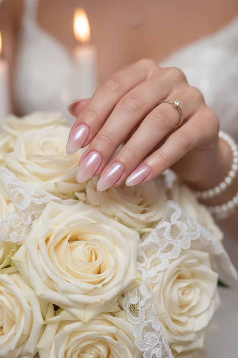 For weddings—whether you’re the bride, a bridesmaid, or a guest—start with a sheer pink nail polish to create that milky pillow of color. Tap in a delicate veil of chrome powder nails to catch the light without going full metallic; think candlelit shimmer, not disco. Seal with a gel top coat and cure under a UV LED nail lamp for a glassy, long-wear finish that survives bouquet tosses and dance floors. The effect reads like heirloom pearls: timeless, romantic, and camera-ready. Finish with cuticle oil to blur any dryness and elevate the overall gleam, and you’ve got glazed donut nails that look couture with lace, satin, or a simple slip dress.