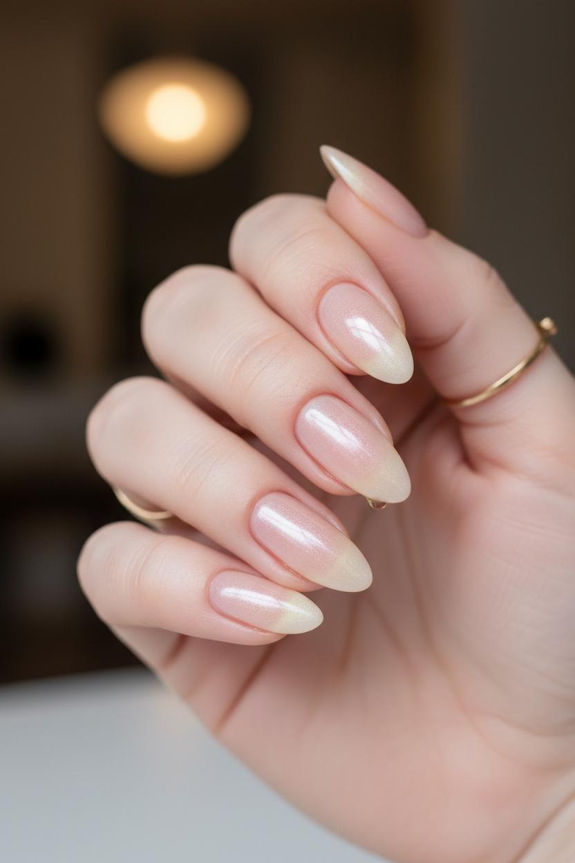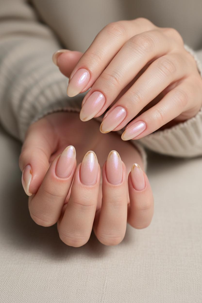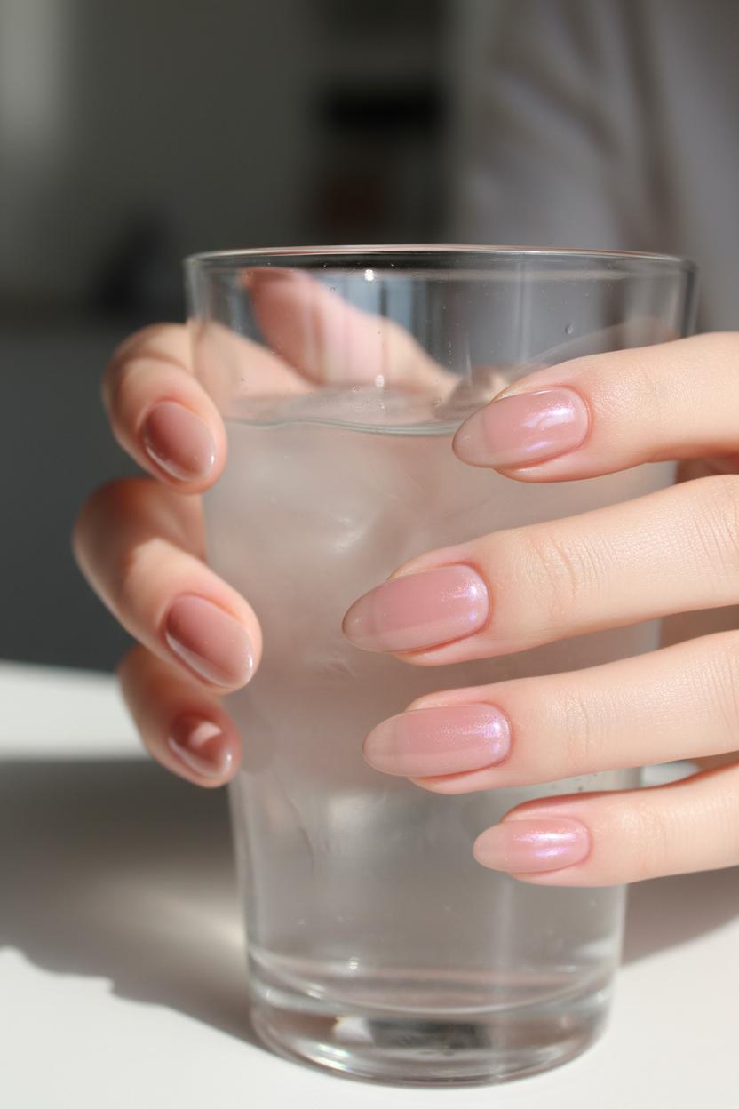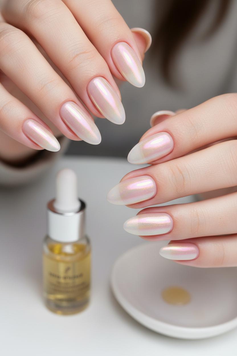 Tailor the glow to your vibe. For clean girl nails that whisper, not shout, keep your base sheer and do the lightest veil of chrome; it reads polished and effortless, like lip gloss for your fingertips. Craving more pop for a night out? Add an extra rub of powder for a brighter reflect and pair with a glossy, high-shine finish. A latte-nude base tweaks the tone warmer; a ballet-pink base skews cool and icy—both equally chic nail ideas for every season. Finish with cuticle oil so the skin around your nails looks hydrated and luxe, and avoid water for an hour to keep the seal pristine. With a little routine—top up cuticle oil daily and wear gloves for chores—your soft glazed donut manicure stays luminous longer, the kind of minimal, shiny, chic look that catches the light (and compliments) every time you move your hands.