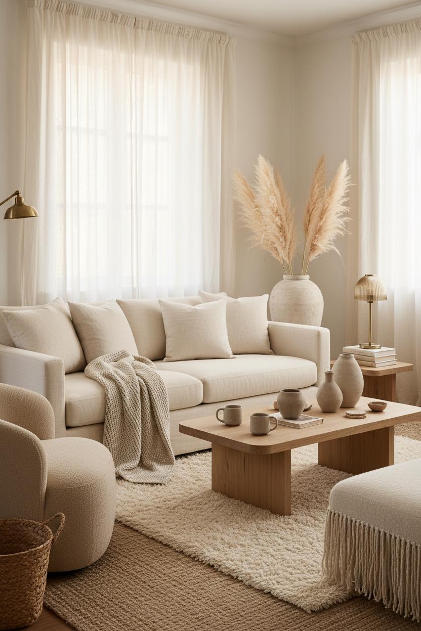 Craving a calm, aesthetic living room that feels airy, grounded, and effortlessly chic? This guide to soft neutral decor blends minimalist living room vibes with modern boho warmth—think a plush cream sofa, a cozy boucle accent chair, and a light wood coffee table styled with linen curtains and pampas grass decor. Discover living room ideas that layer textures, balanced proportions, and tone-on-tone palettes for a relaxed sanctuary you’ll actually live in. From smart storage to glow-boosting lighting, we’ll show you how to create a neutral decor moment that’s timeless, inviting, and totally you.