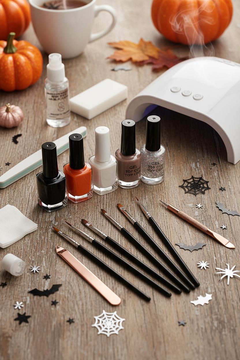 Before you paint a single spooky swirl, gather your at-home kit so your DIY gel nails session feels smooth and satisfying from start to finish. Start with a gel nail polish set that includes a true black, a creamy bone white, a pumpkin orange, and a smoky taupe or mauve, plus a glitter topper for moonlit sparkle. Make sure you have a gel base coat and both a glossy and a matte top coat—gloss for glassy drips and shine, matte for that soft, velvety finish that screams chic fall manicure. Prep matters, so add a gentle file, buffer, cuticle pusher, and lint-free wipes with isopropyl alcohol to cleanse. If you love quick transformations, keep a few halloween nail decals on hand—tiny bats, stars, and spiderwebs are instant crowd-pleasers on halloween nails.