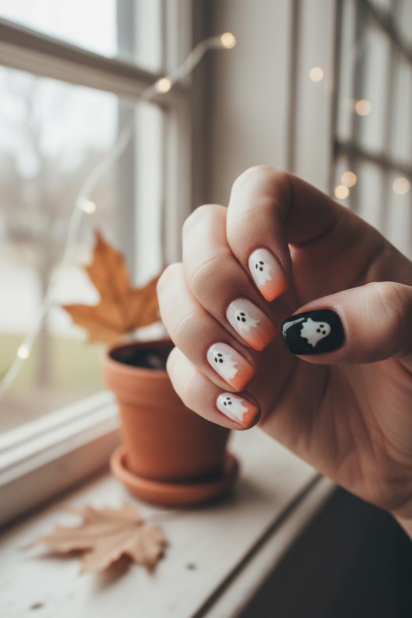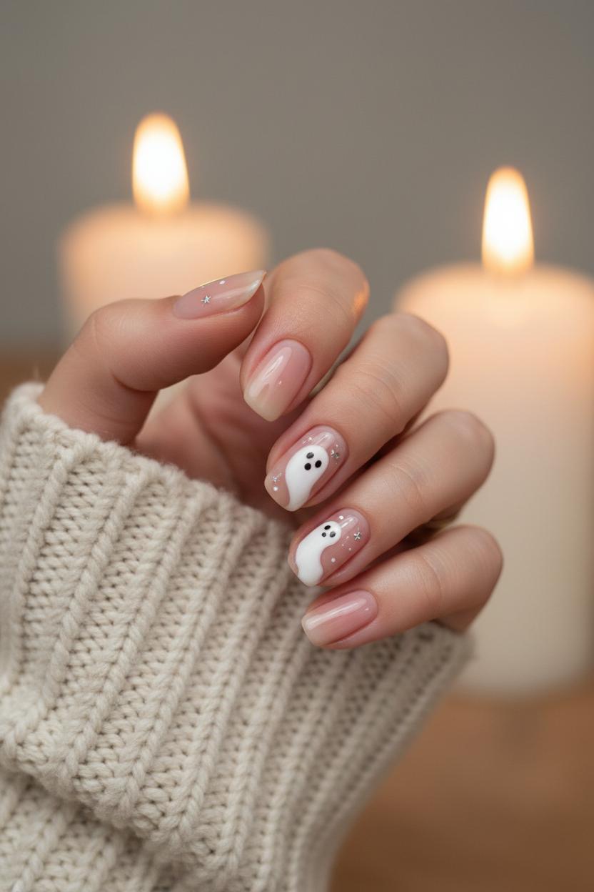 Pressed for time but craving something delightfully eerie? Try this quick ghost nail art that’s equal parts cute and creepy—perfect for halloween nails that still feel chic. The look is minimal, playful, and totally wearable as a fall manicure, whether you’re headed to a pumpkin patch or a last-minute costume party. Think soft, floating white spirits drifting over a sheer nude or smoky taupe base; the result is one of those spooky nail designs that reads stylish rather than campy, and it photographs beautifully in candlelight and cozy sweaters.