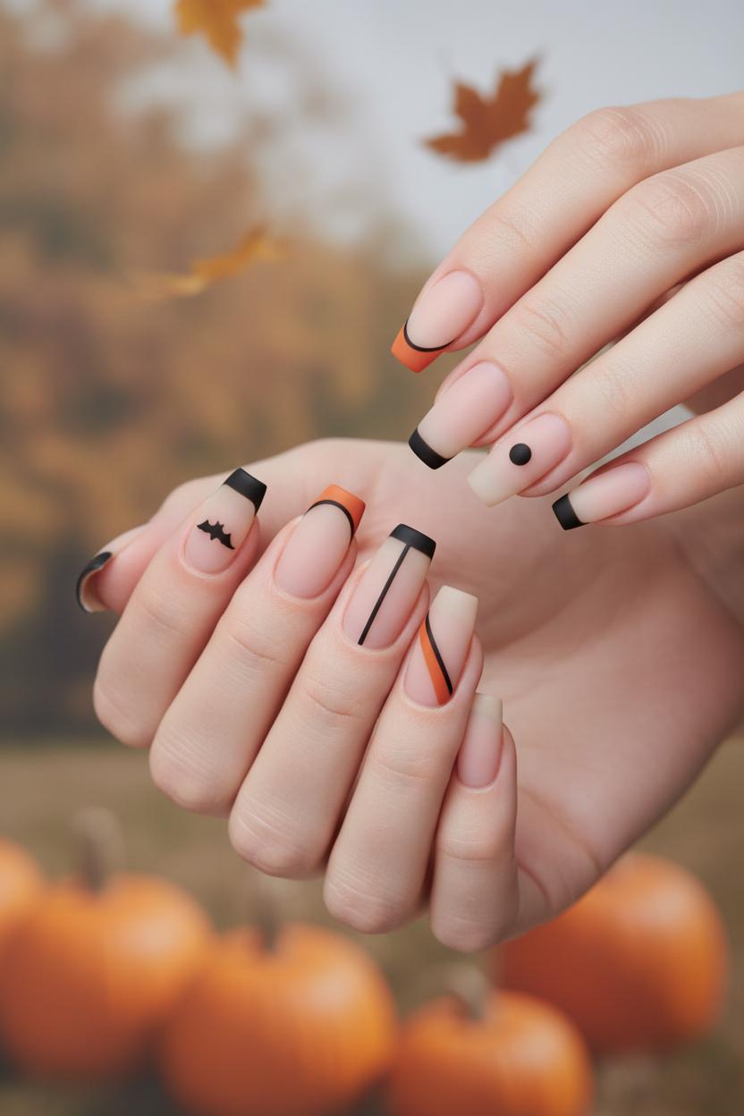 Mix-and-Match Halloween Nail Ideas: Accent Nails, French Tips, and Ombre for Black and Orange Nails