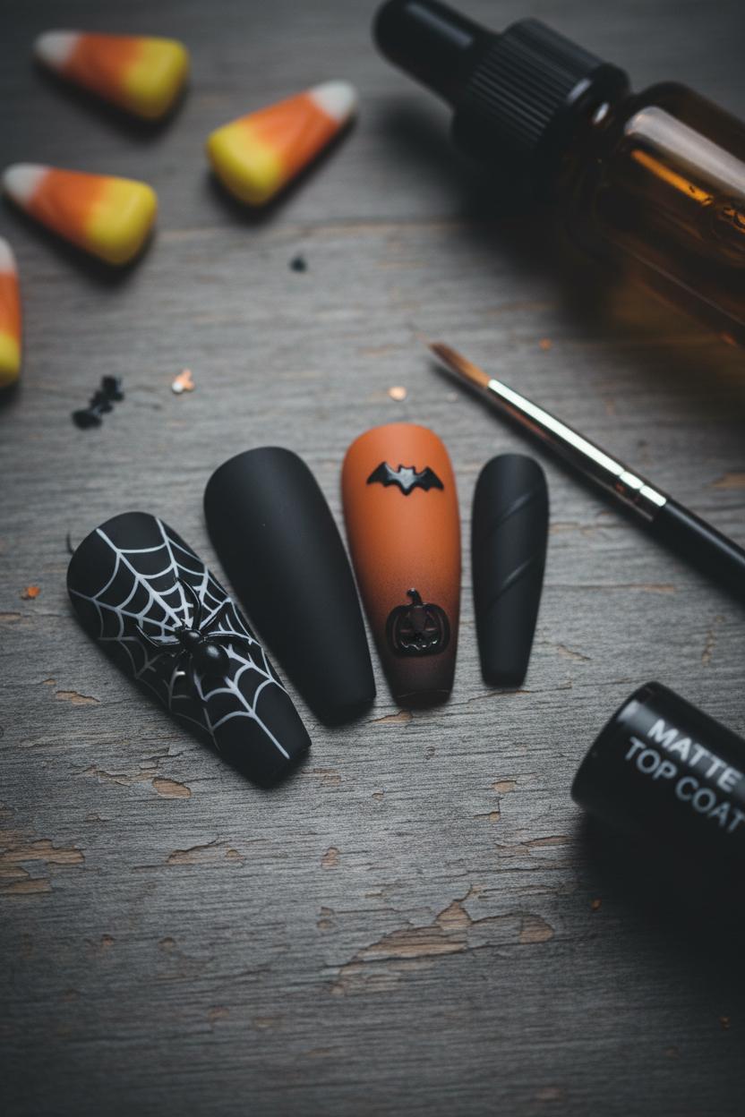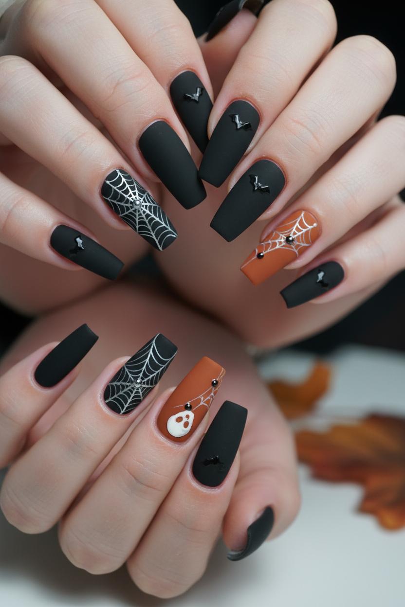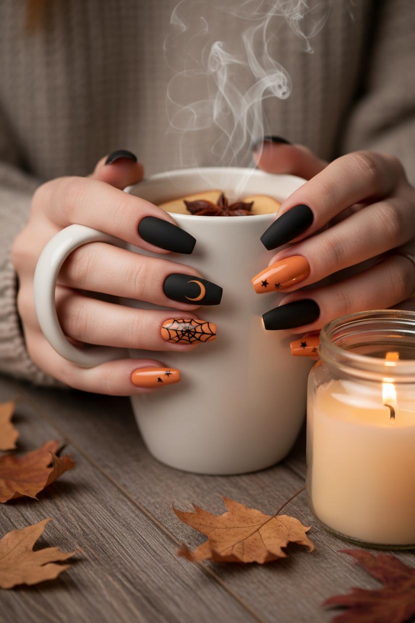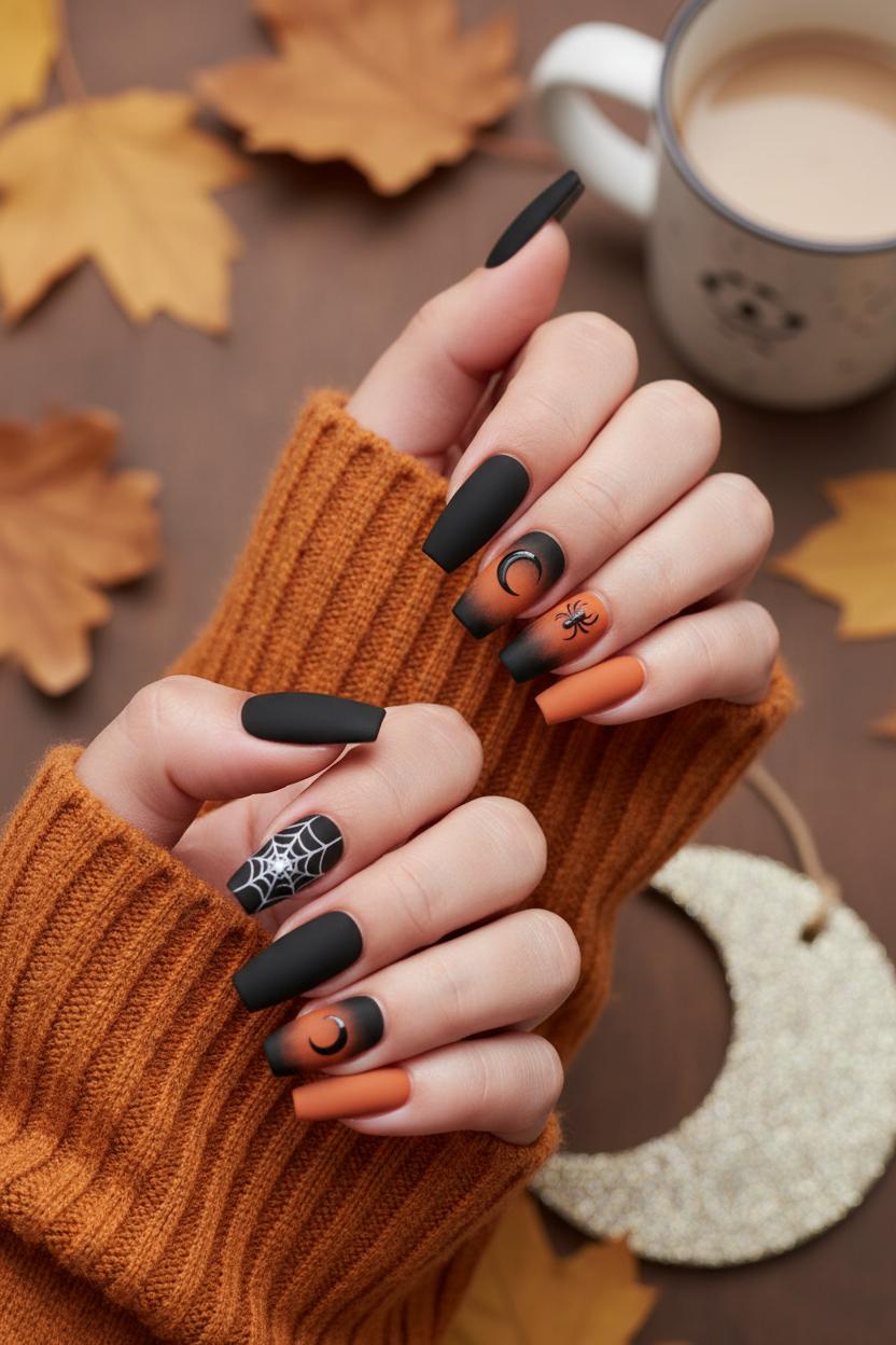 Spooky-Chic Halloween Nails: Matte Black + Pumpkin Orange