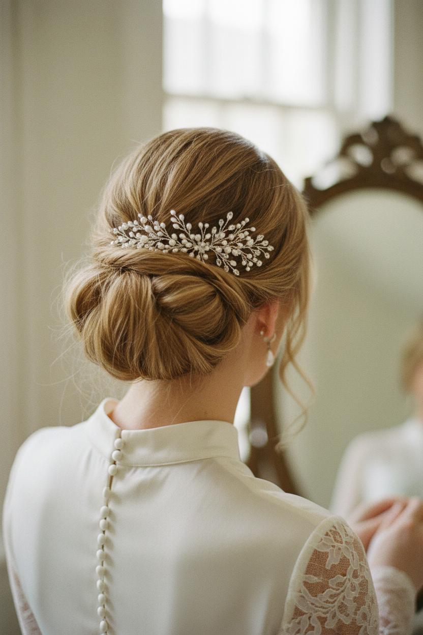 Styling-wise, think placement and personality. Tuck a comb low and slightly off-center for a classic, ballerina finish; slide it above one ear for that Old Hollywood sweep; or stack two delicate pieces for airy dimension. For a vintage-inspired wedding, choose freshwater pearls and antique flourishes; for a minimalist mood, try a slim crystal bar that mirrors clean necklines. Whatever you choose, let the piece frame your features, complement your gown, and sparkle in motion—because the most timeless bridal looks are the ones that feel like you, with just a whisper of shine that lingers long after the last dance.