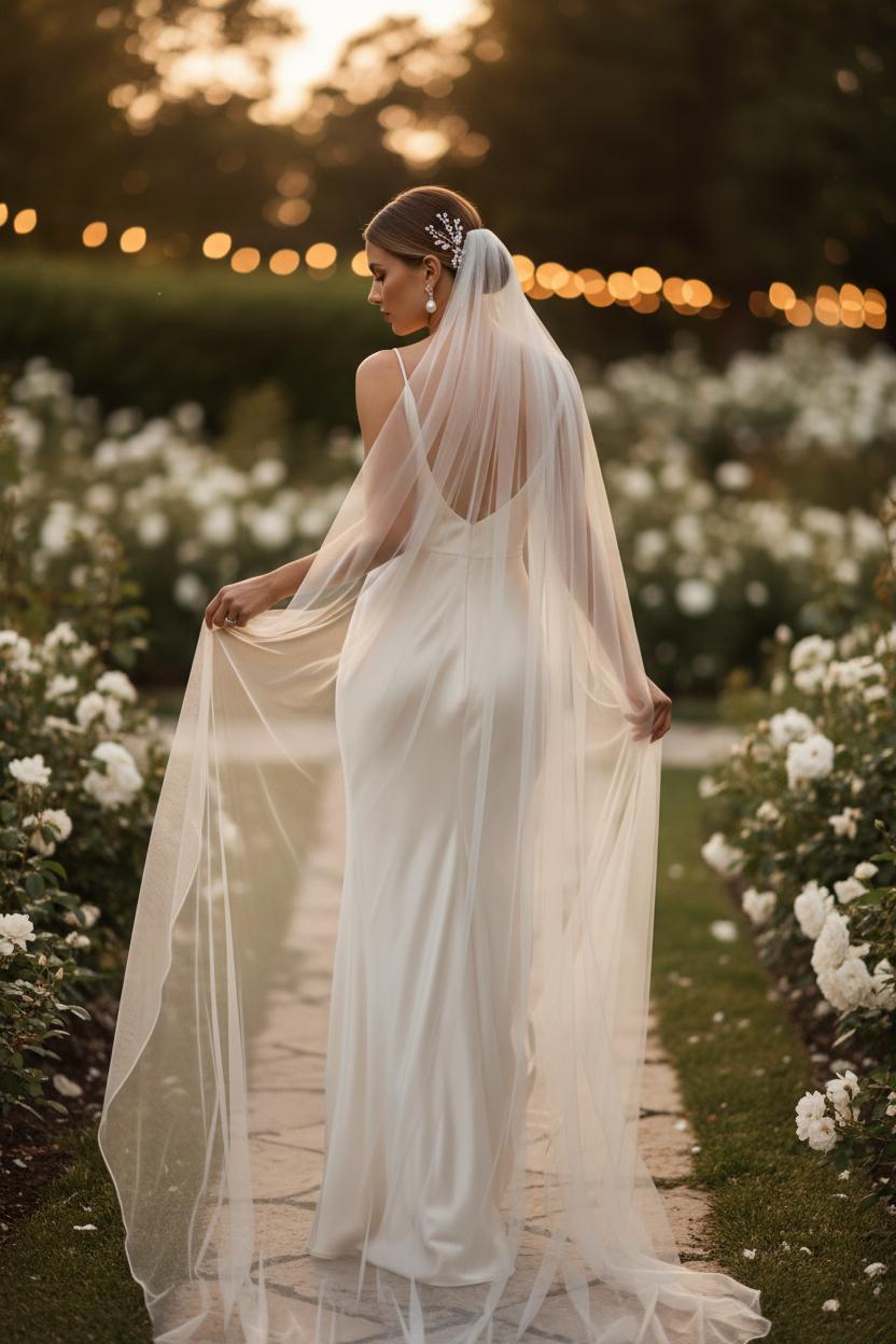 Chapel-length veils offer a softer take on grandeur, just kissing the floor and blending seamlessly with gowns that have a modest train. They’re beautiful in ballrooms, gardens, and anywhere you want movement without too much fuss. Fingertip-length veils feel effortless and flirty, floating around your waist and letting intricate bodice details shine—perfect for dancing, hugging guests, and breezy portraits. Try them with a fit-and-flare or tea-length look to underline classic wedding style without overshadowing the dress. Add lace bridal gloves for a touch of retro charm, or keep it modern with clean edges and a simple comb. Whether you choose cathedral, chapel, or fingertip, a long veil is less about rules and more about rhythm—how it sways with your walk, catches the light, and completes the picture of an elegant bride whose bridal fashion story feels beautifully, unmistakably hers.