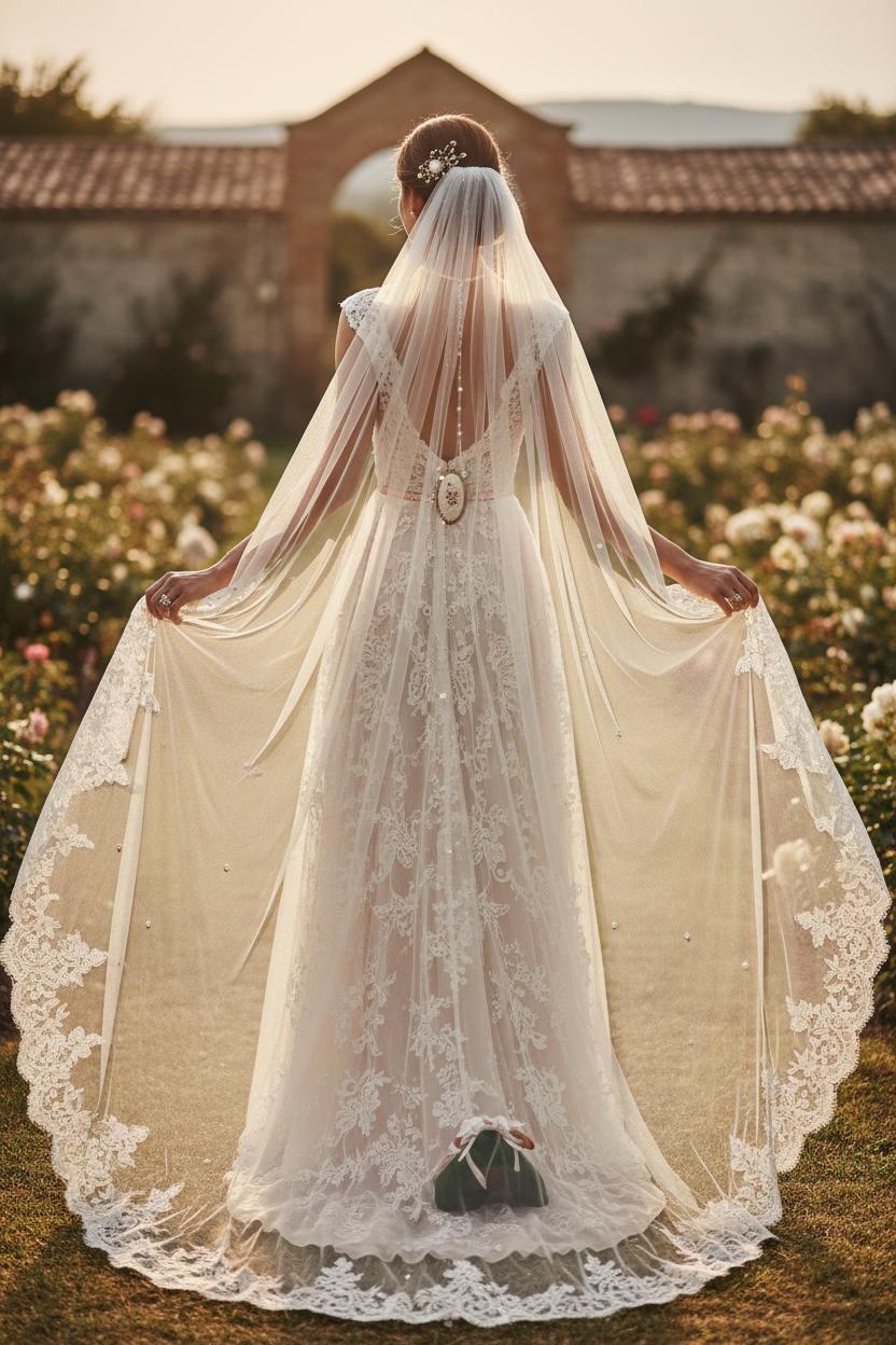 Heirloom accessories complete the story, layering meaning over beauty. Imagine your grandmother’s strand of pearls resting against the neckline of a lace bridal dress, or your mother’s vintage brooch sliding onto the veil comb to keep your something old close. A slim watch, satin gloves, or a filigree hairpin can feel quietly opulent, especially when styled with restraint. Let one piece take the lead, then pair it with modern touches: a slim belt with an antique clasp around an elegant wedding gown, a crystal drop earring that mirrors a heirloom pendant, or velvet shoes that echo the depth of a vintage ring. If metals don’t match perfectly, keep the tones warm or cool across pieces for cohesion, and choose a veil with motifs that repeat the heirloom’s pattern—tiny leaves, art deco lines, or floral lace—to create effortless harmony.