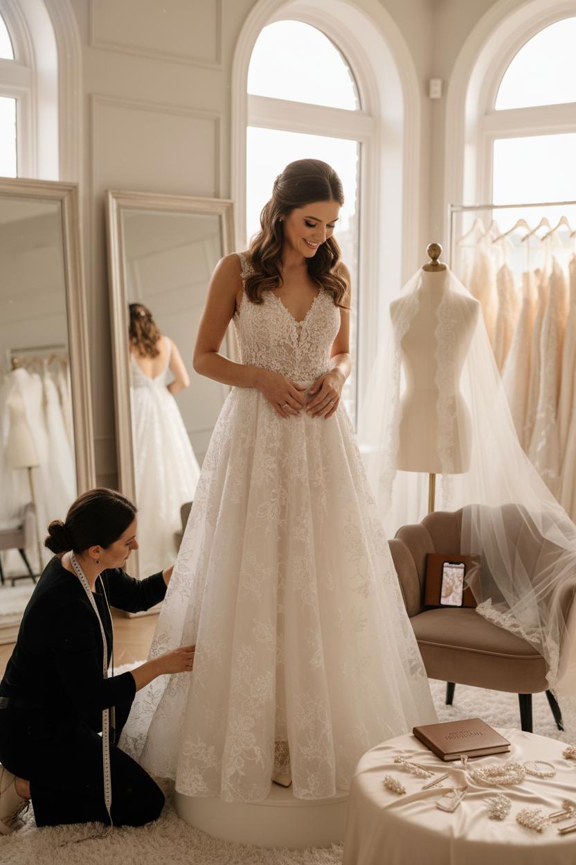 Your checklist begins at the first fitting, when the magic of elegant wedding gowns becomes real and personal. Arrive with the shoes and undergarments you plan to wear so your tailor can set the hem and sculpt the bodice just right, and snap photos of the details you love—lace appliqués, buttons, or that fluid train—for reference later. This is also the moment to choose your veil length and hair accessories, visualizing how everything layers for a classic wedding style that feels like you. Whether you’re drawn to an elegant wedding gown with sleek lines or a romantic lace bridal dress, keep a little journal of tweaks and timelines; luxury bridal fashion looks effortless because it’s thoughtfully planned.