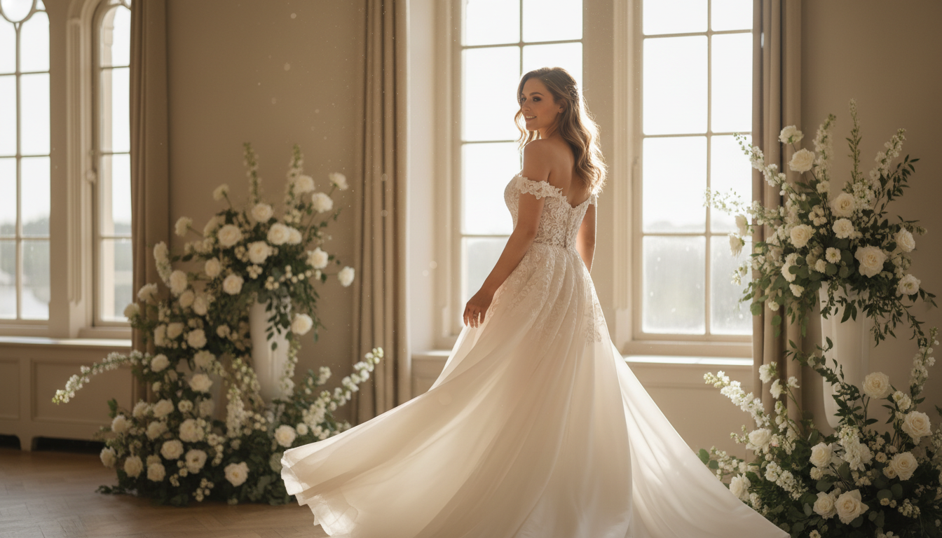 Sustainability can be as romantic as a veil floating in golden hour light. Choose fabrics with a future—deadstock silk, organic cotton lace, or recycled tulle—and silhouettes that live beyond the day. A versatile A-line wedding dress with a detachable overskirt, removable sleeves, or a transformable train gives you a ceremony look and a reception reveal without buying twice. Prefer an off shoulder wedding dress or a lace bridal dress? Opt for modular elements like a topper or cape, so you can restyle your elegant wedding gown for special events later. Accessories matter, too: a beautifully made cathedral veil can become a cherished keepsake or something you lend, making it part of your family’s story. After the celebration, have everything expertly cleaned and preserved, then consider restyling—hemming your gown into a midi, dyeing a silk slip, or pairing the bodice with tailored trousers. Investing in quality means lower cost-per-wear over time, fewer replacements, and a lighter footprint—proof that choosing well is its own kind of romance.