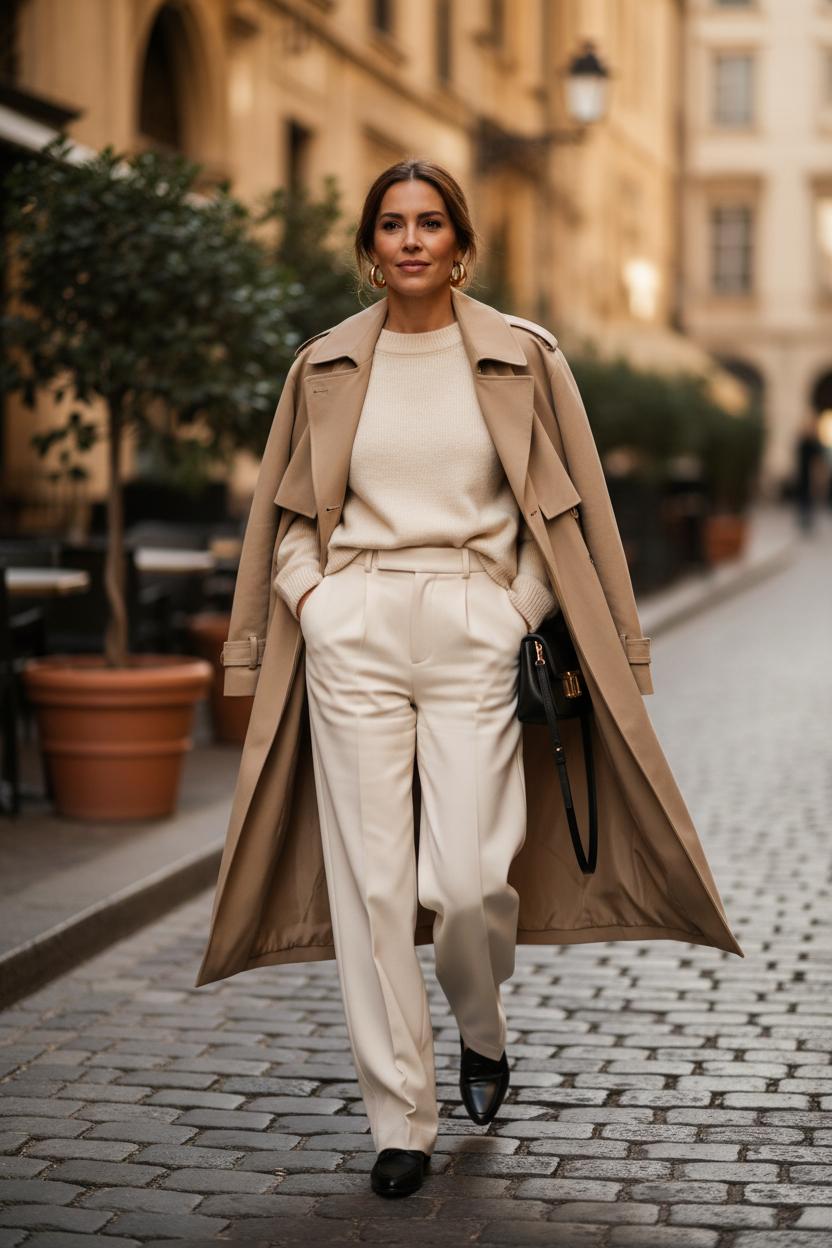 For outfit ideas you can repeat on busy mornings, build a capsule wardrobe that loves to mix and remix: blazers that work with sweats and slip skirts, jeans that dress up with a silky cami or down with a cozy hoodie, loafers that pair with socks for a preppy nod or bare ankles for spring. Keep proportions in mind—a boxy jacket over streamlined bottoms is universally flattering and instantly pins as a street style outfit moment. On chillier days, tuck a fine turtleneck under your blazer and add a trench on top; when it warms up, swap in a tank and let those gold hoop earrings do the talking. If you crave a pop, choose one accent—scarlet lip, cobalt knit, or a patterned scarf—so the silhouette stays clean and the vibe remains minimalist chic. With these wearable layers and easy accessories on deck, you can rotate looks all week and still feel fresh, proving that the most trendy looks are the ones that work hard quietly, day after day.
