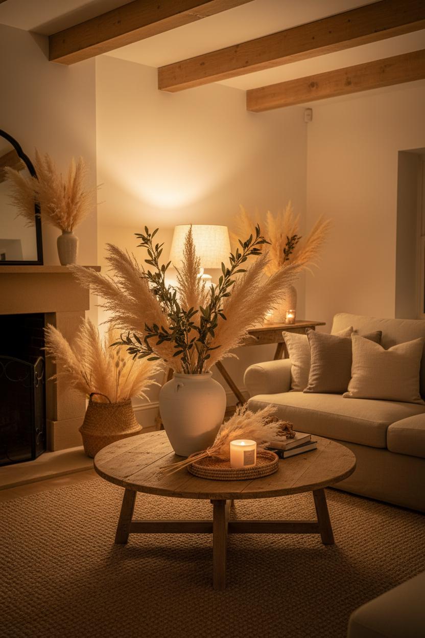 Organic Accents: Faux Pampas Grass and Greenery that Warm the Room