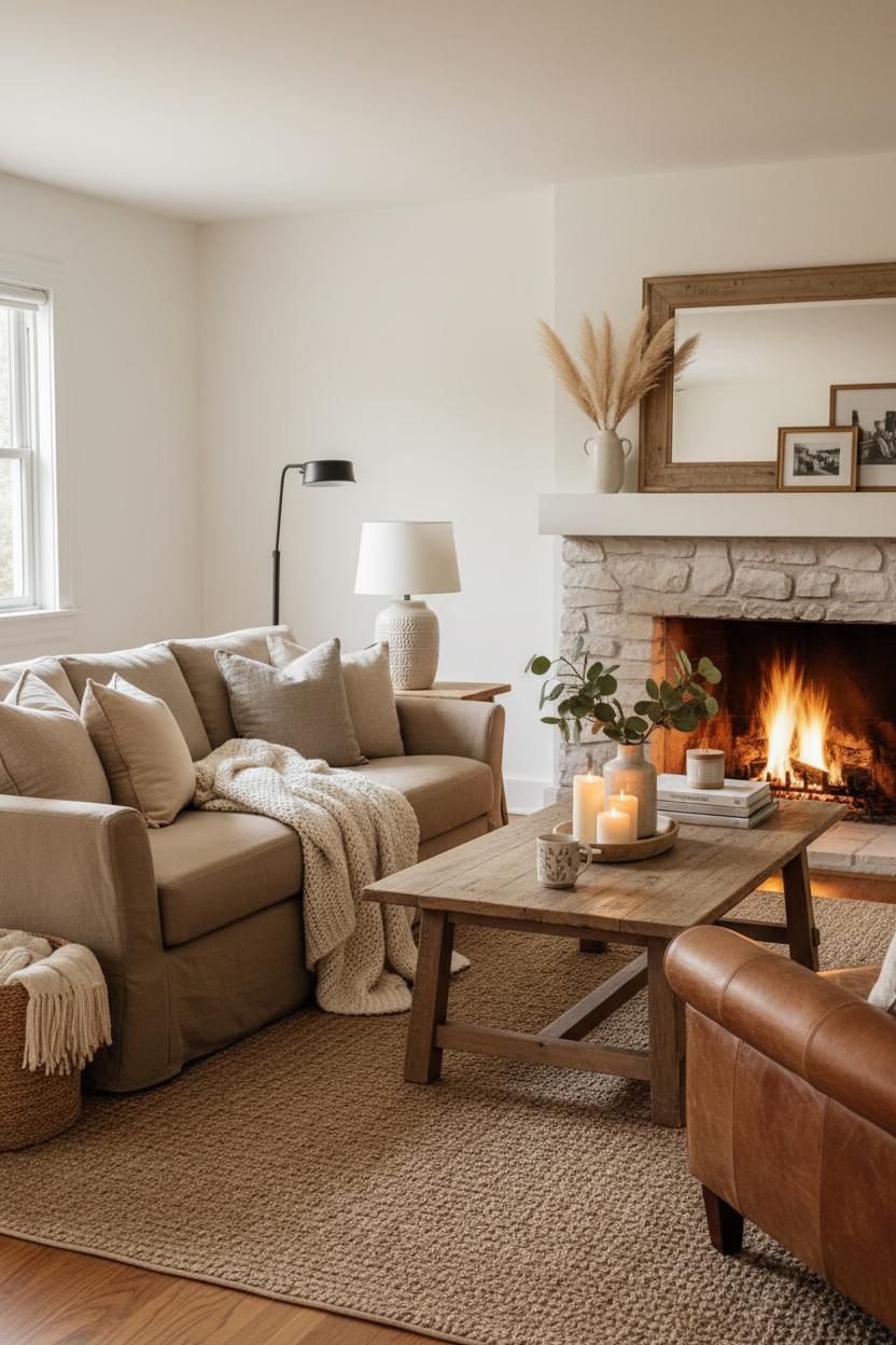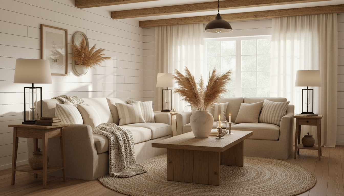 Craving a warm farmhouse living room that wraps you in comfort? This guide to rustic living room decor shows how to craft a cozy neutral home with effortless modern farmhouse style. From texture-rich living room styling to budget-friendly swaps, we’ll layer linen throw pillows, a jute area rug, a rustic coffee table, a ceramic table lamp, and airy faux pampas grass for instant charm. Think creamy hues, weathered wood, and candlelit glow—perfect for movie nights and slow weekends. Ready to turn your space into a snug retreat? Let’s cozy up your living room, one welcoming detail at a time.