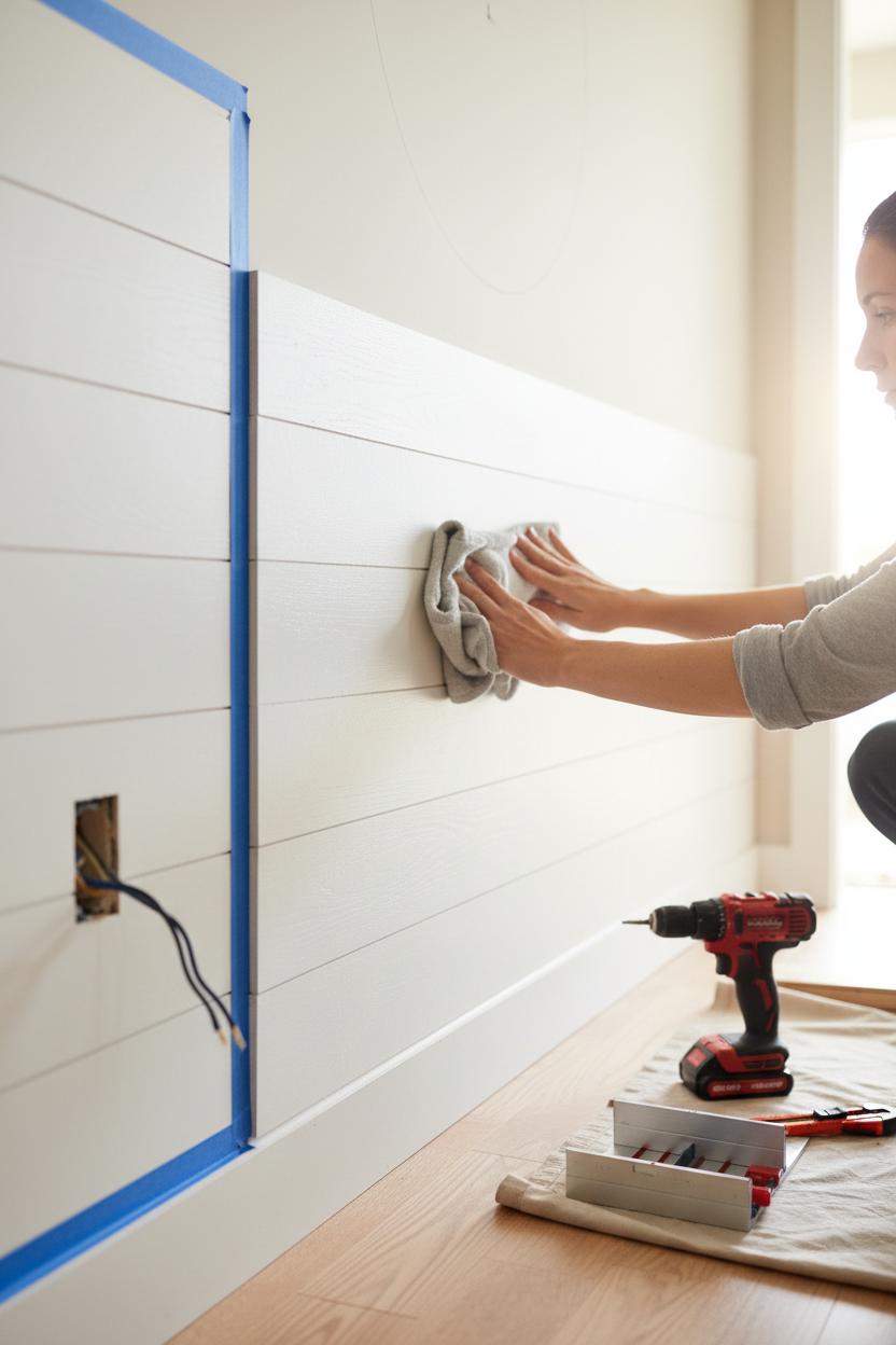 Ready to give your walls that breezy, cottage-meets-modern vibe? Peel and stick shiplap is the ultimate shortcut for a feature wall that looks custom without the custom price tag, and it’s perfect for weekend projects. Start by giving your entry wall a quick cleanse with a degreaser and a once-over with fine-grit sandpaper so the adhesive has a nice, grippy surface. Pop off outlet covers with a cordless drill and run painter’s tape along adjacent walls to protect them. Then, find your level line—this is your North Star for keeping boards straight in a small space decor setup where every inch counts. I like to dry-fit a few rows on the floor first to plan seams and avoid skinny slivers at the bottom; mixing lengths and staggering ends makes it feel like true woodwork.